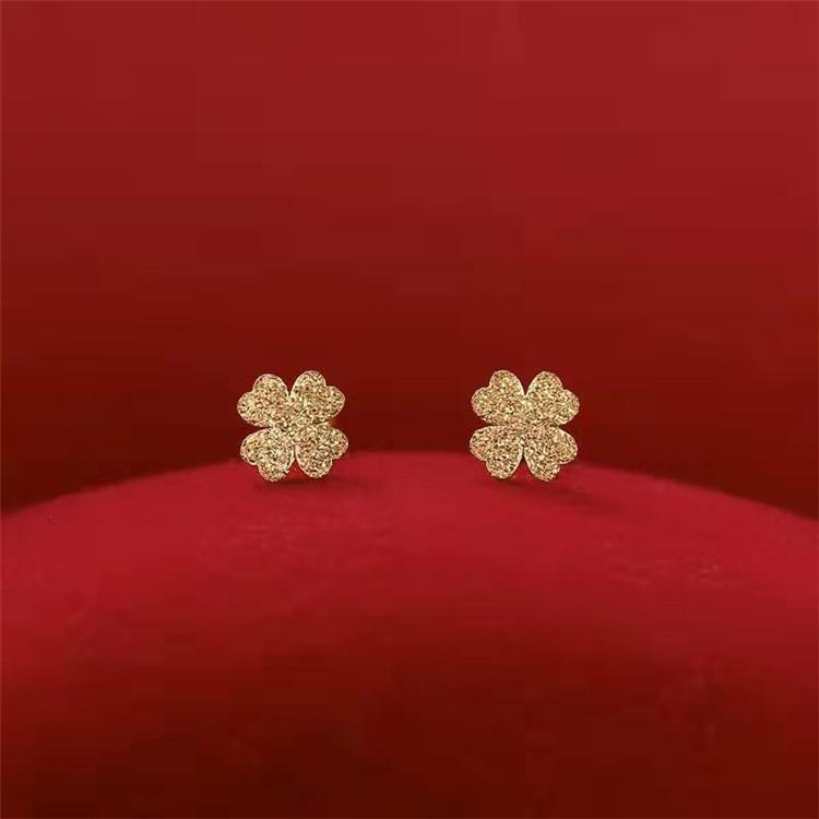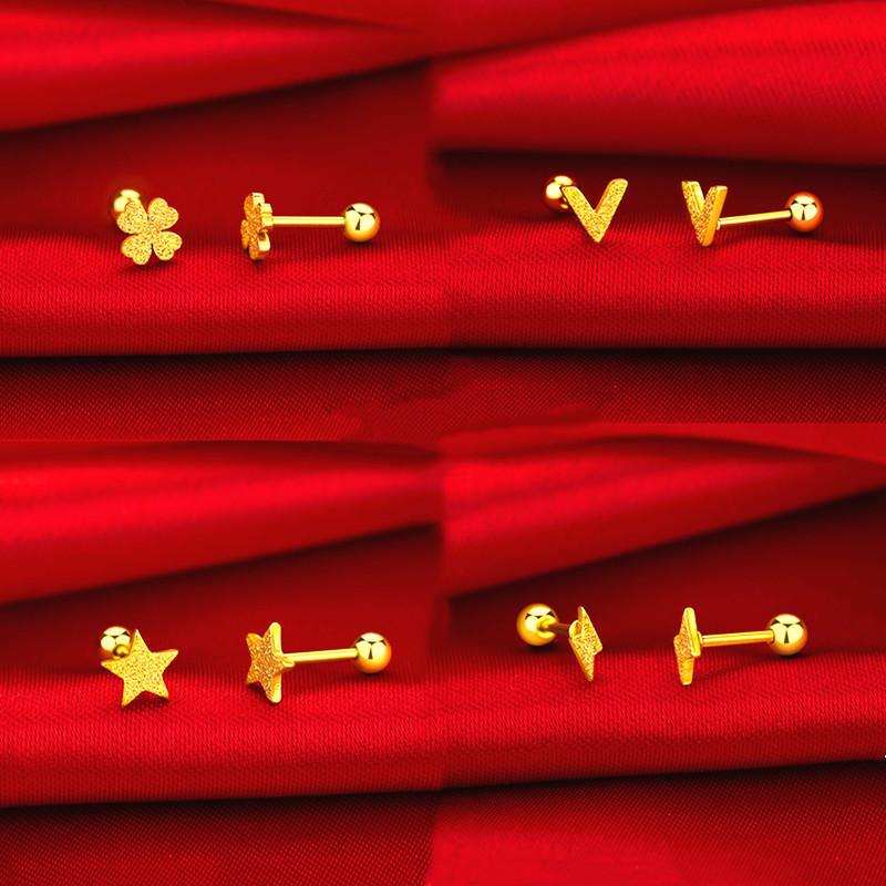 Single gold four-leaf clover earring, Single gold hollow love earring, Single gold snowflake earring, Single g...