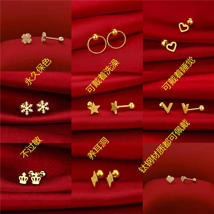Fabricantes para la versión coreana del nuevo clavo de hueso de oreja de tornillo clavo de oreja de acero de titanio galvanoplastia al vacío pendientes de copo de nieve de estrellas de amor para mujer