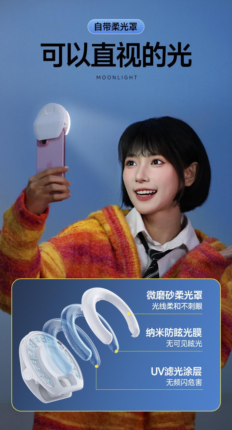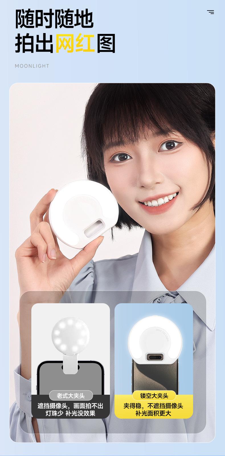 Clip para teléfono móvil transfronterizo Luz de relleno LED Iluminación para transmisión en vivo Selfie D7 Luz de relleno para selfie de belleza para teléfono móvil