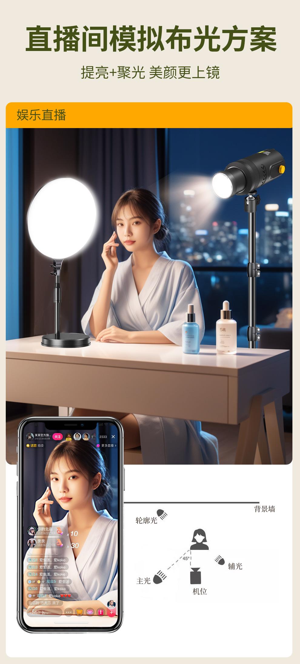 Luz de Fondo Lámpara de Cabello Ancla Fondo Sala de Transmisión en Vivo Lámpara Especial Luz de Relleno Diosa Belleza Atmósfera Foco