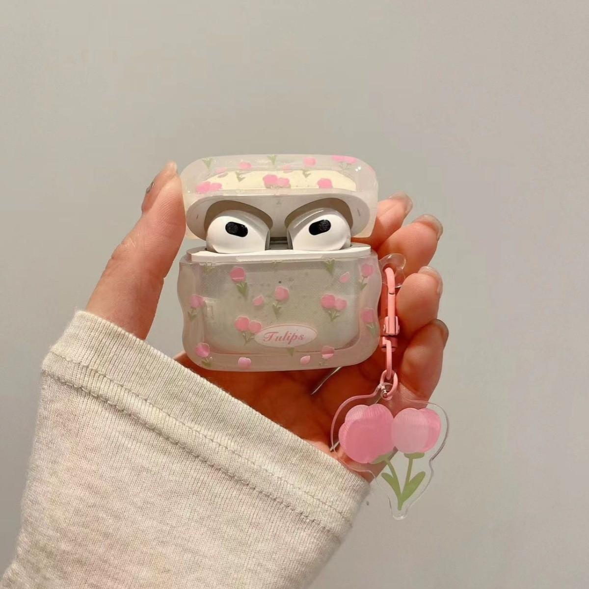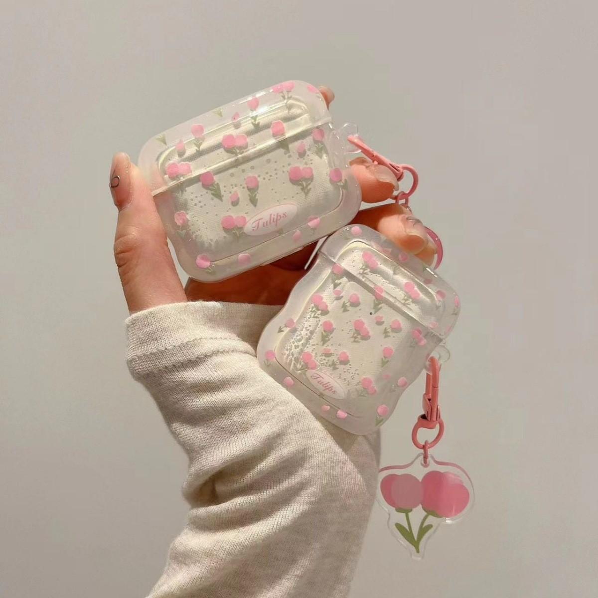 Tulipán de Onda Rosa Adecuado para Estuche Protector para AirPods 3 Nicho Pro2 Bluetooth 1/2 Generación Estuche para Auriculares Han Feng