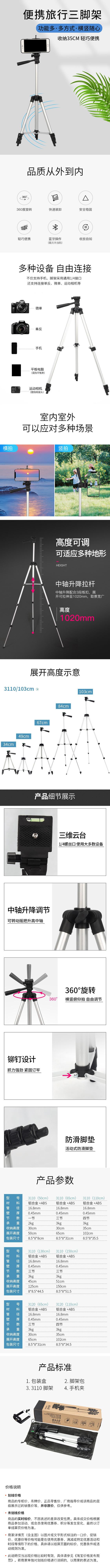 Trípode 3110 para teléfono móvil, soporte en vivo para cámara réflex, trípode de escritorio de aleación de aluminio para selfies