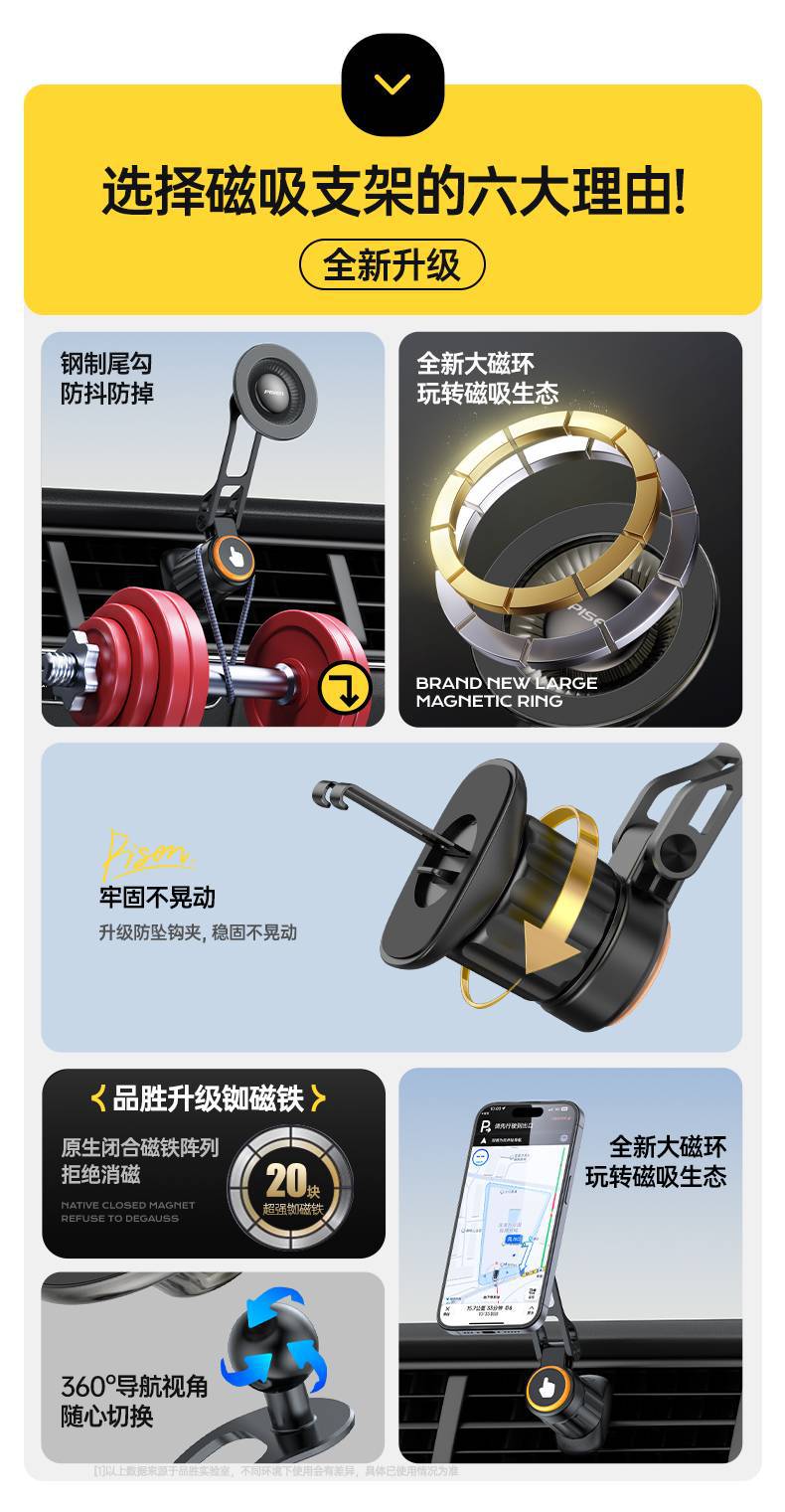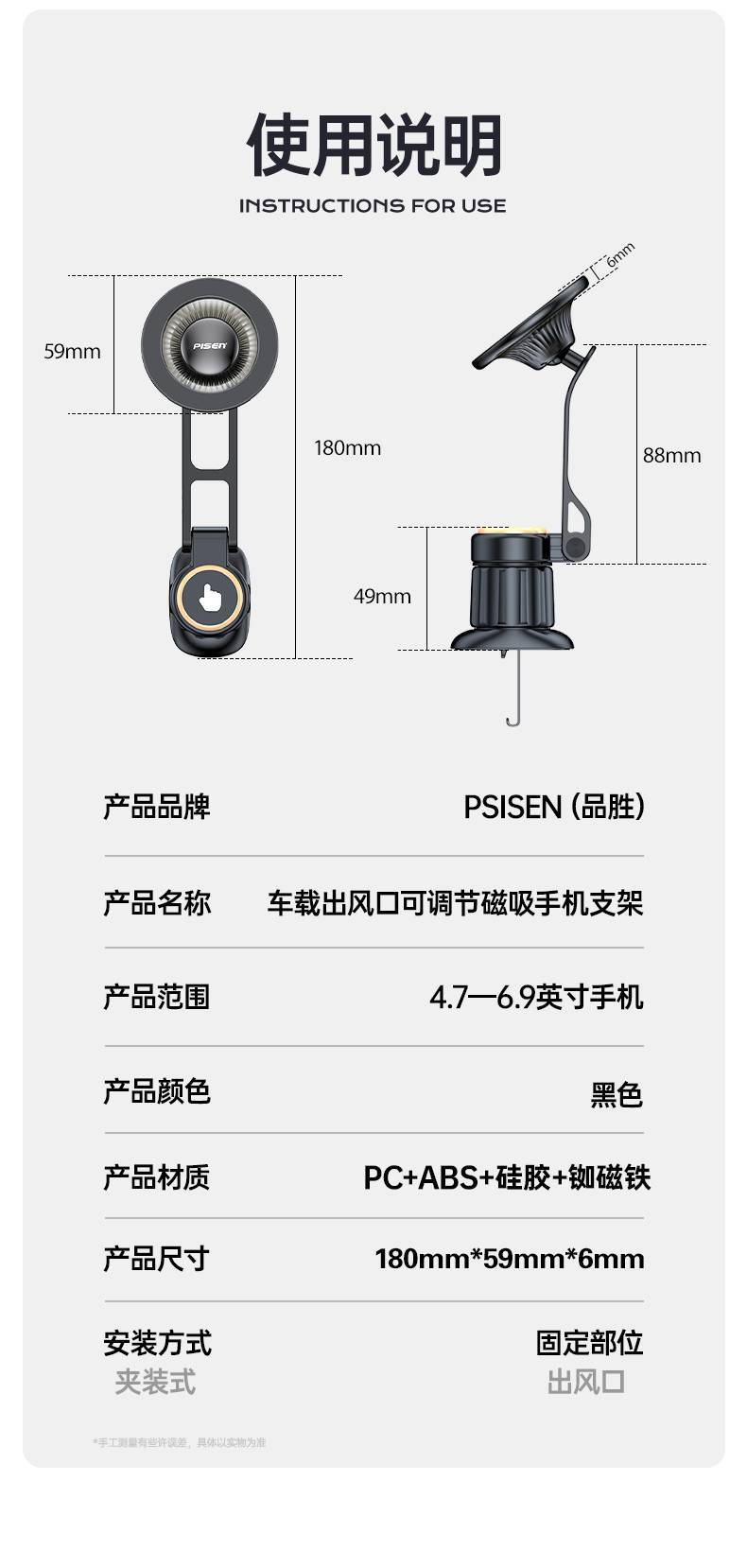 Soporte para teléfono móvil con succión magnética ajustable para salida de aire Pinsheng, navegación multifuncional, suspensión curva arbitraria, marco de soporte para pantalla