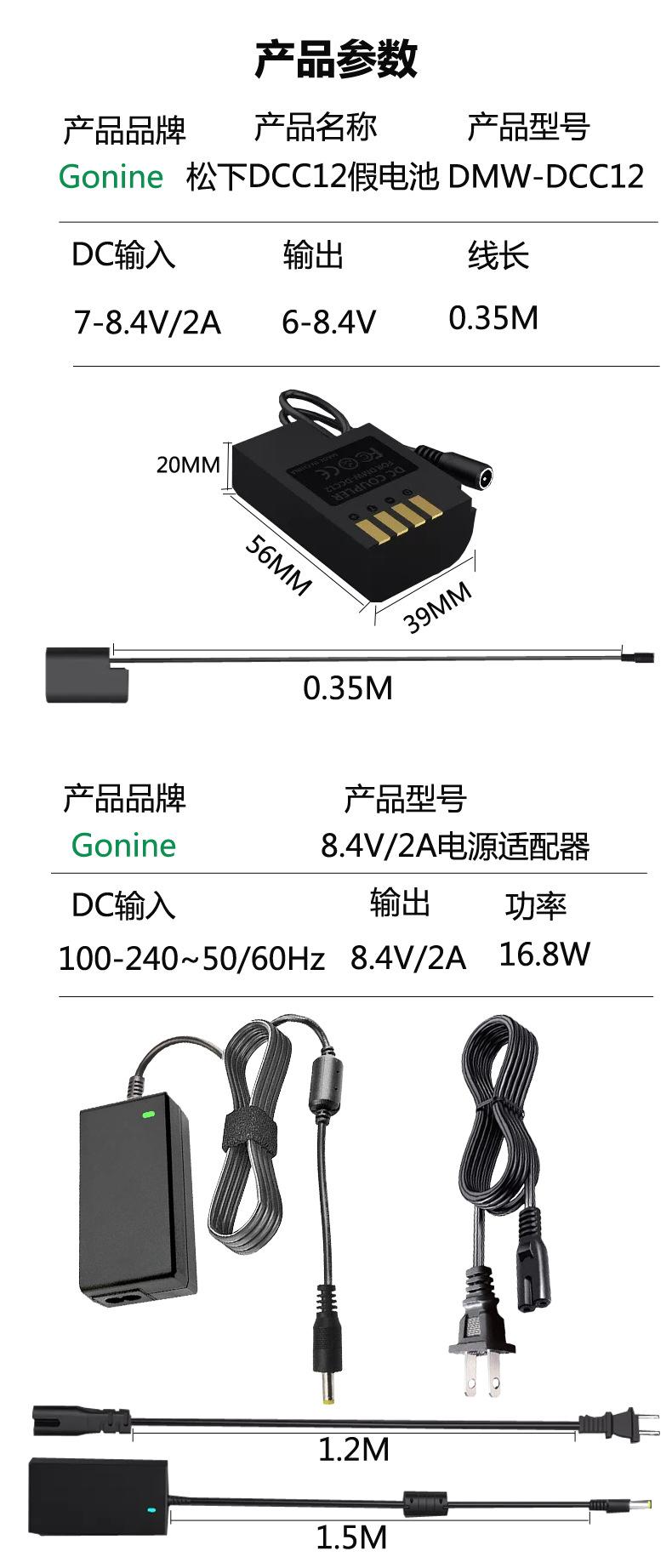 Juego de baterías falsas Gonine DCC12 para cámaras Panasonic DMC-GH3, DMC-GH4 y DMC-GH3K
