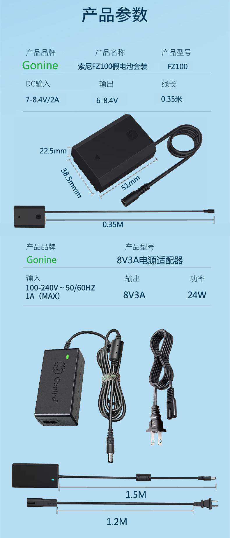 1x FZ100 fake battery + power cord + Power Supply + packing box