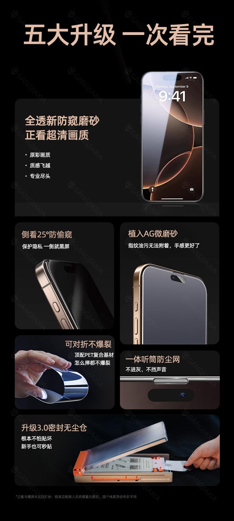 Frosted, Hd, Explosion-proof, Dustproof, Anti-fingerprint, Anti-fall, Full screen, Anti-peeping, Automatic rep...