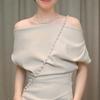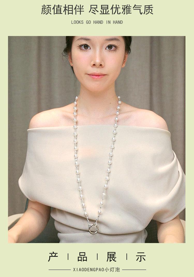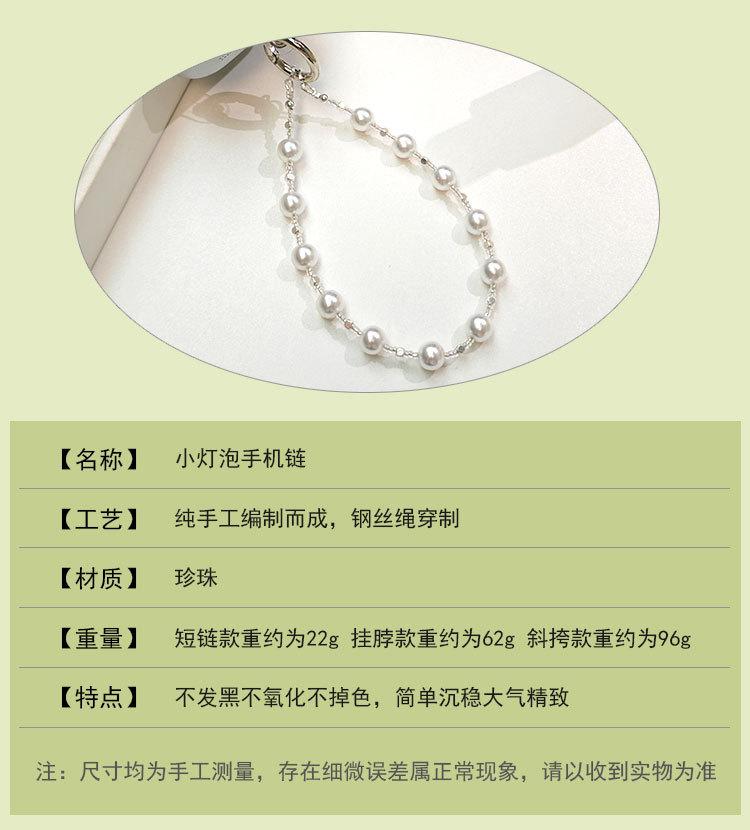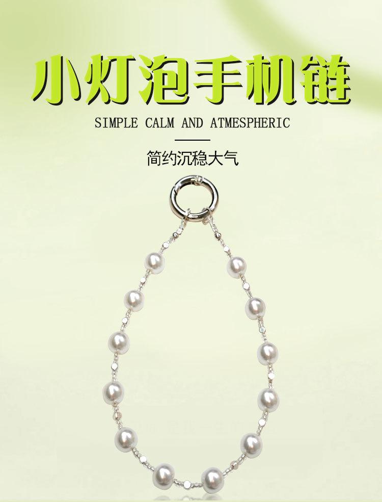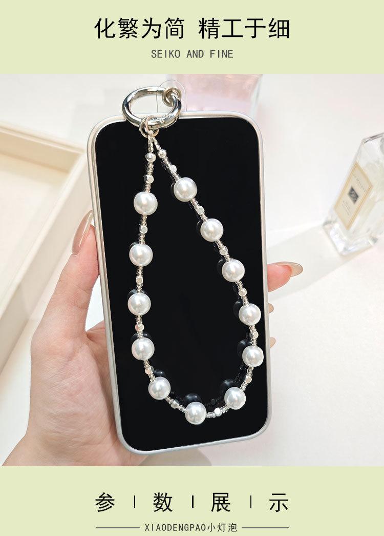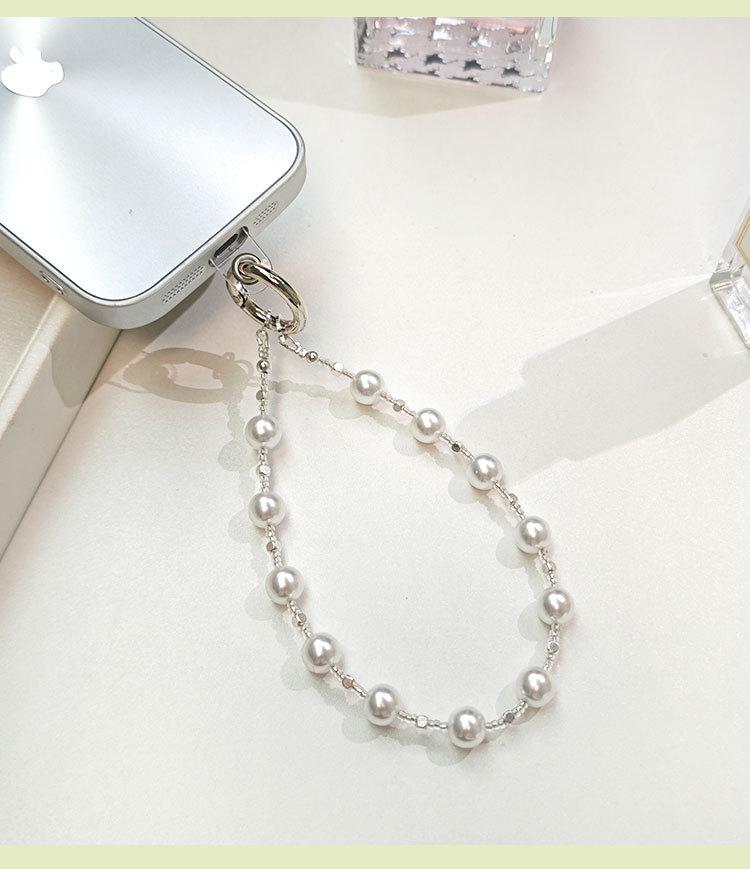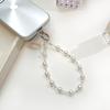 [foco pequeño] cadena para teléfono móvil para mujer, cadena de perlas blancas a la moda, llavero, cadena colgante simple y atmosférica para funda de teléfono móvil