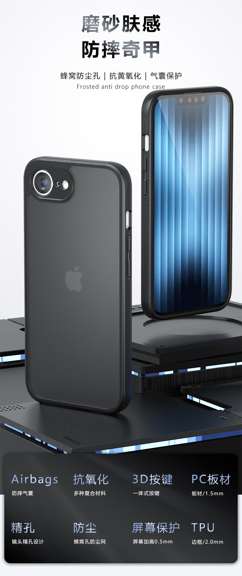 Adecuado para iPhone SE4 Funda para teléfono móvil Nuevo Apple SE4 Sencillo tacto de la piel Airbag Esmerilado Airbag Transparente 16 Anti-caída