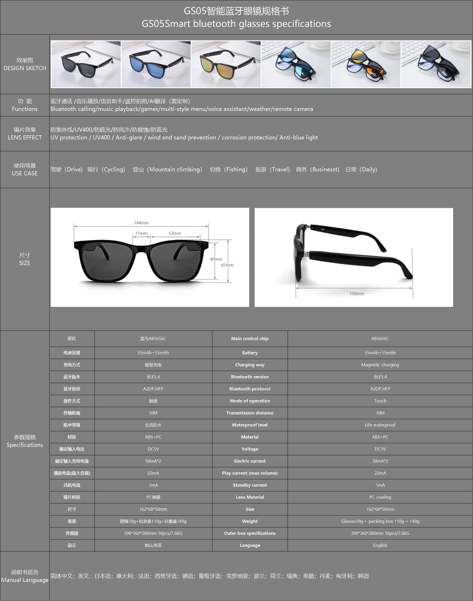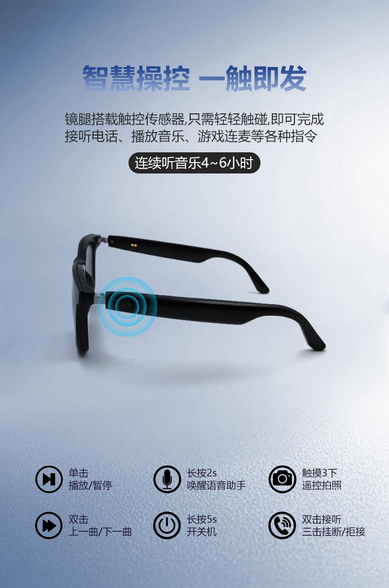 Nuevas gafas inteligentes GS05 audio Bluetooth control remoto foto música anti-luz azul ultravioleta gafas de moda