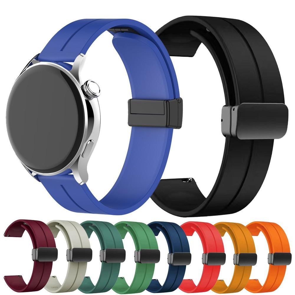 Esta correa de reloj utiliza una hebilla plegable magnética de metal