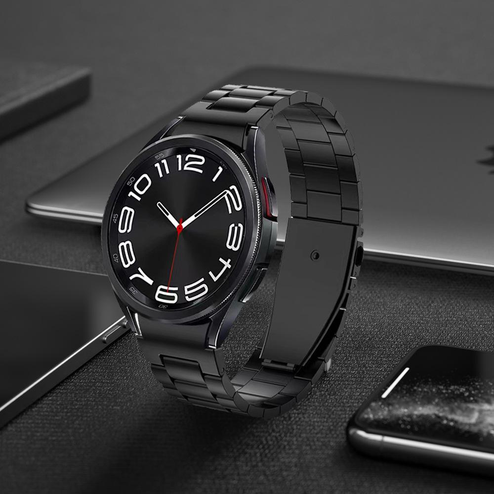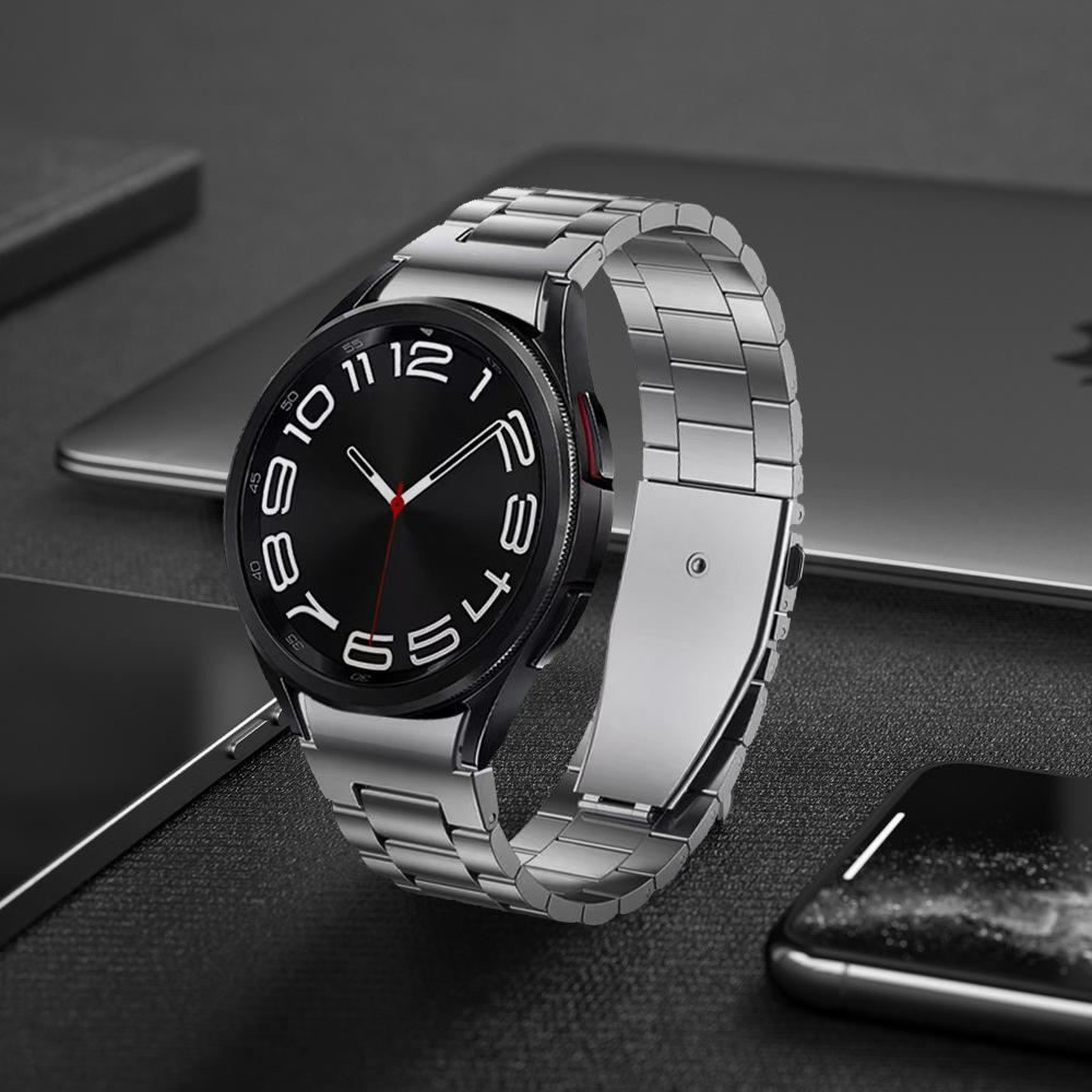 Correa de acero inoxidable de liberación rápida con hebilla plegable de tres cuentas clásica para Samsung Galaxy Watch 6.