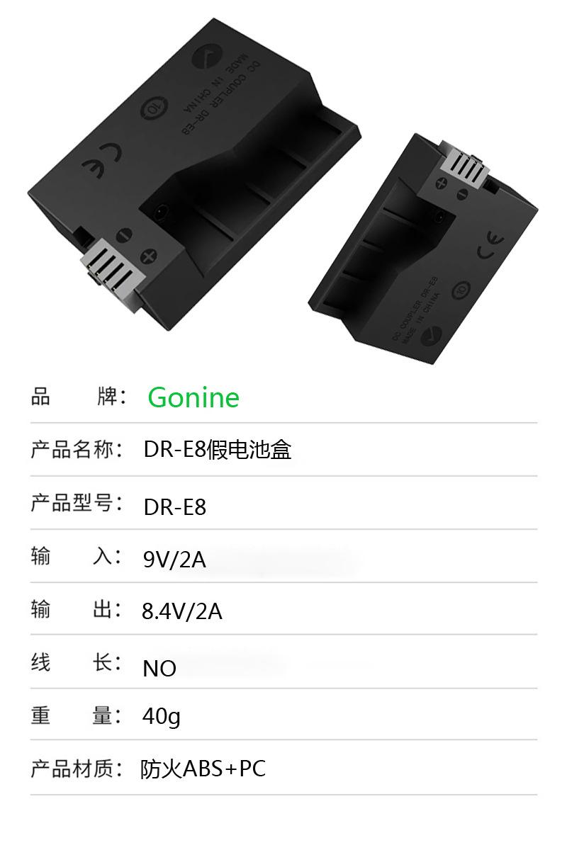 Caja de batería falsa Gonine DR-E8 batería falsa LP-E8 para cámara Canon 650D 600D