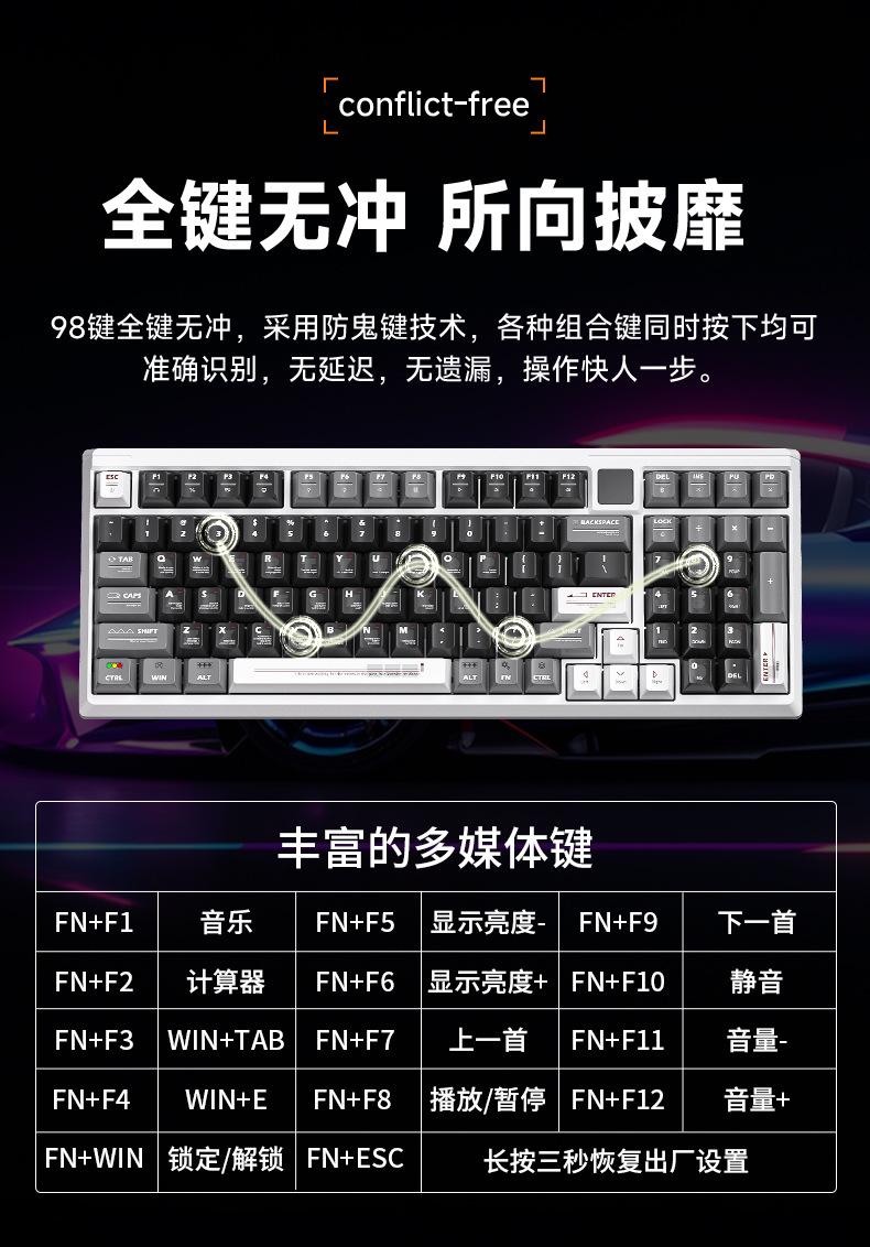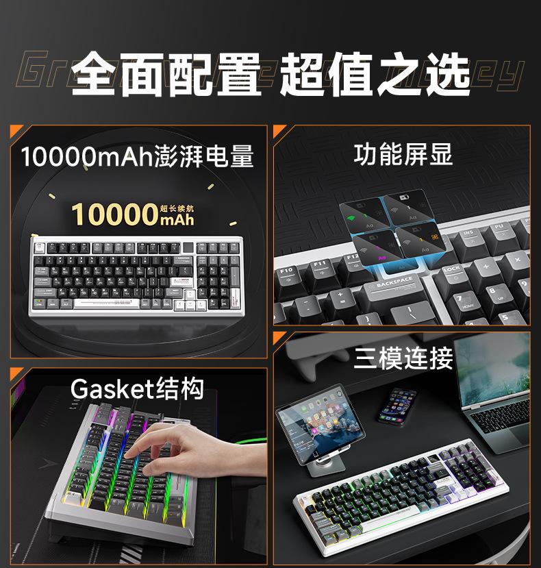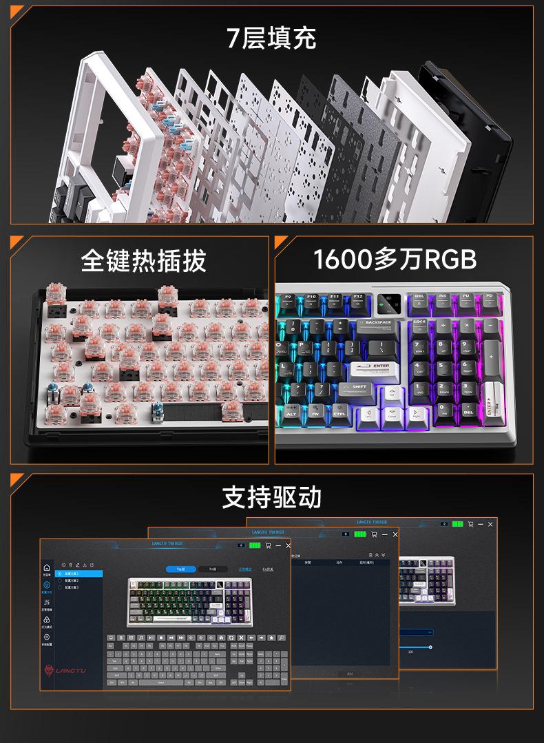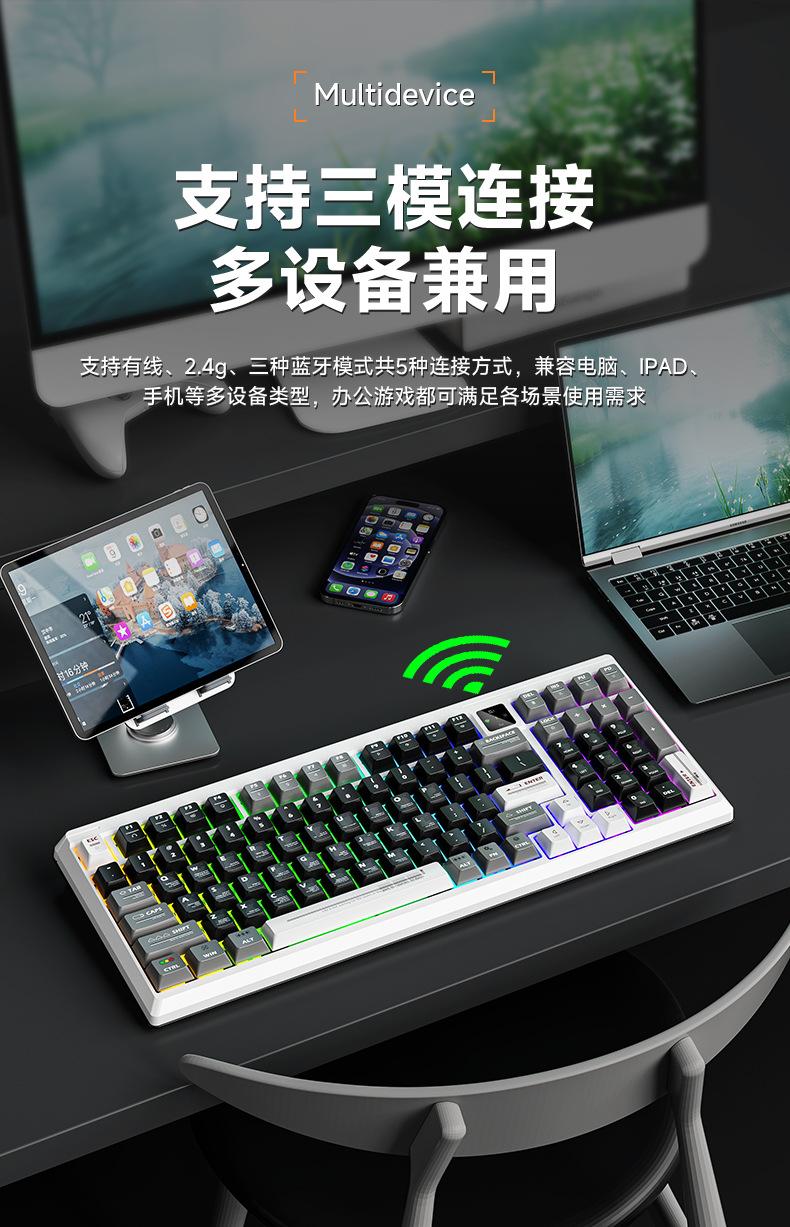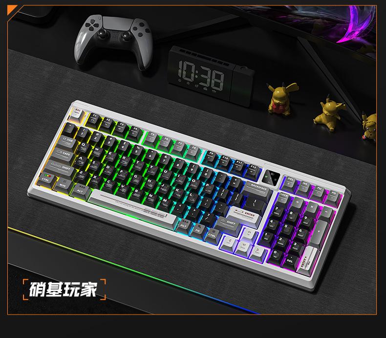Teclado mecánico personalizado Langtu T98 tres modos alto valor para juegos oficina con pantalla intercambiable en caliente teclado inalámbrico