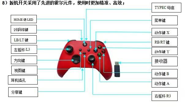 (3) Este controlador inalámbrico se utiliza en la serie de consolas Xbox One y es compatible con los juegos de consola del sistema PCWIN10 (el sistema WIN7 requiere la instalación del controlador)