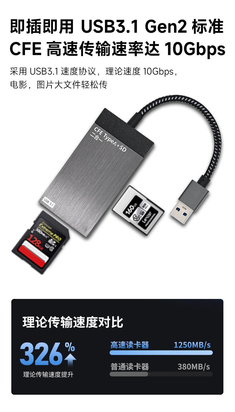 Cfexpress type a+sd 2-in-1 card reader, Cfexpress type b+sd 2-in-1 card reader