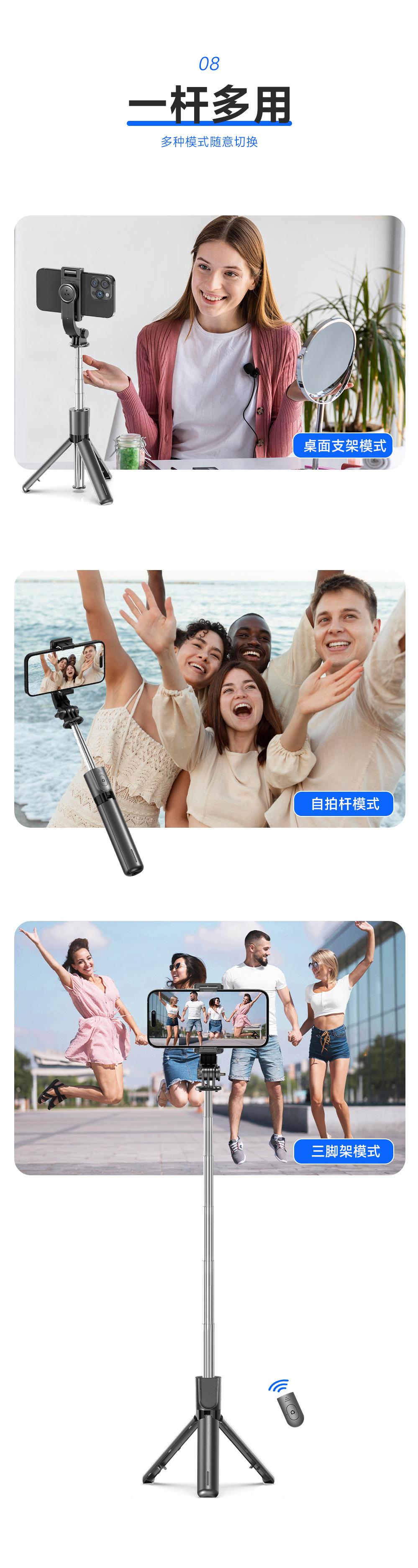 Hermoso trípode para selfie con punto de disparo, portátil, antivibración, retráctil, de mano, con Bluetooth, para cámara y teléfono, para exteriores