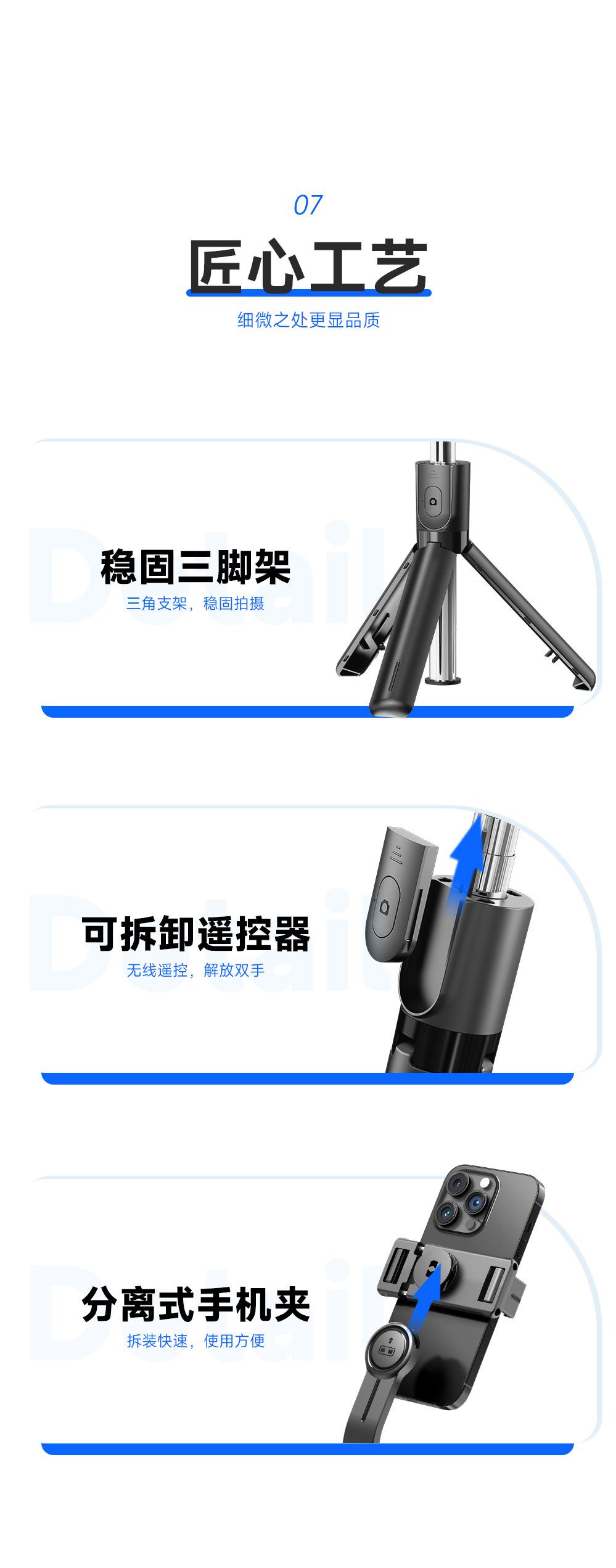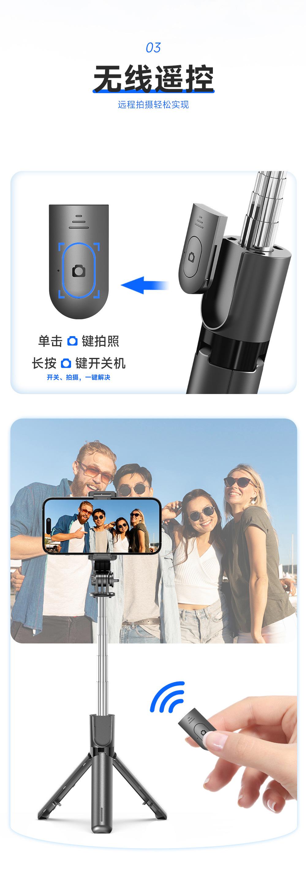 [f01-black] stainless steel shaft + stable tripod + bluetooth remote control, General