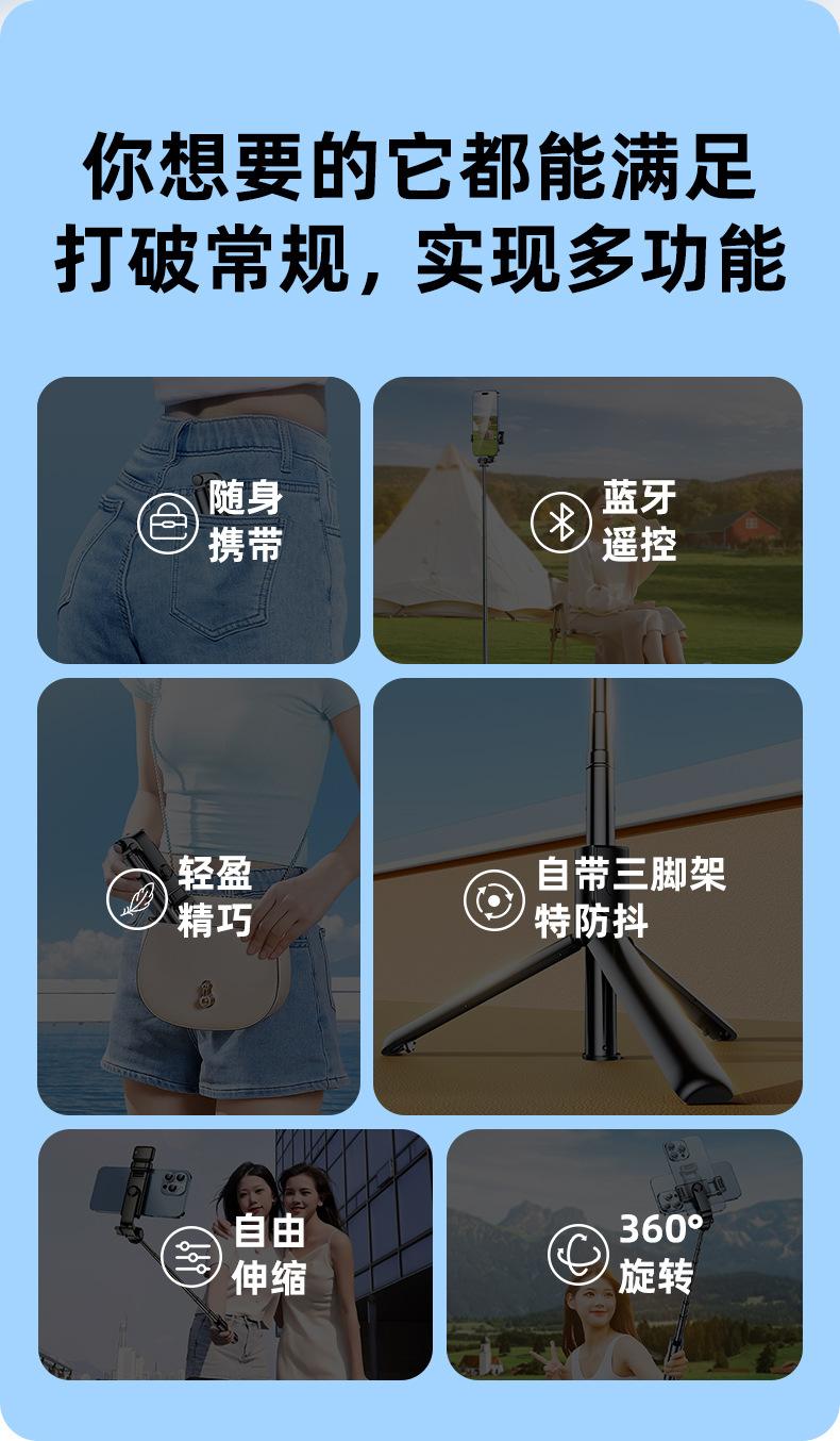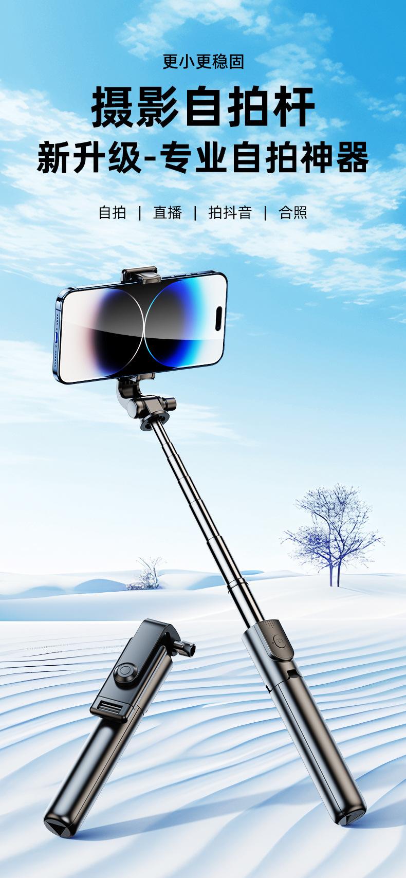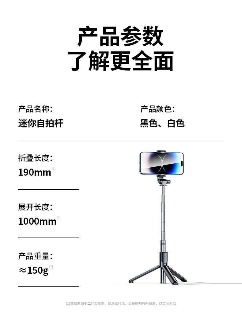 Mini palo de selfie de mano, luz, suplemento de viaje, cámara portátil, artefacto, teléfono móvil, transmisión en vivo, soporte, trípode de disparo con Bluetooth