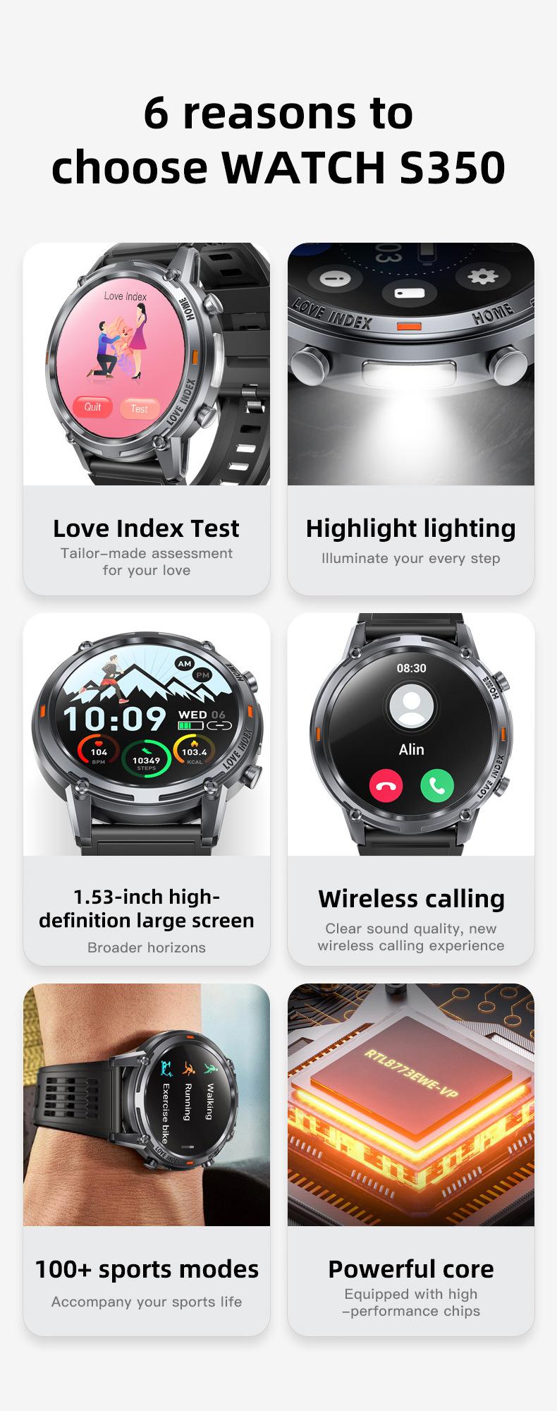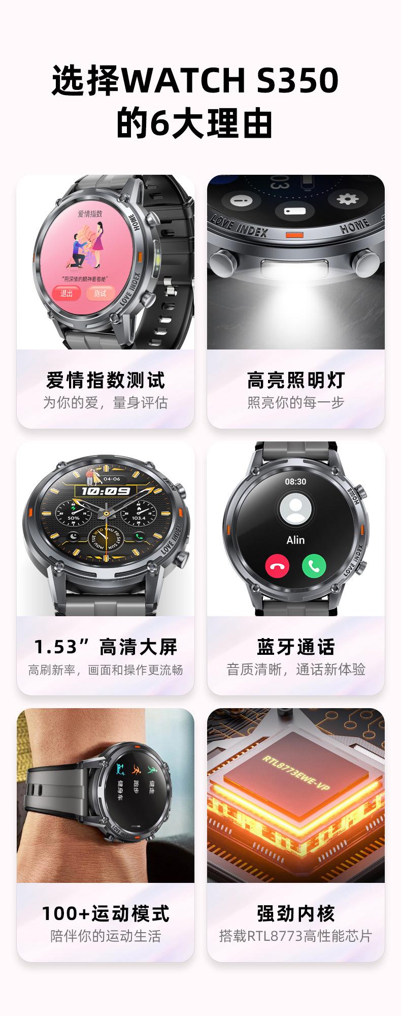 Reloj inteligente transfronterizo de pantalla grande de 1,53 pulgadas con Bluetooth, llamada, multifunción, deportivo, nuevo, pulsera inteligente S350