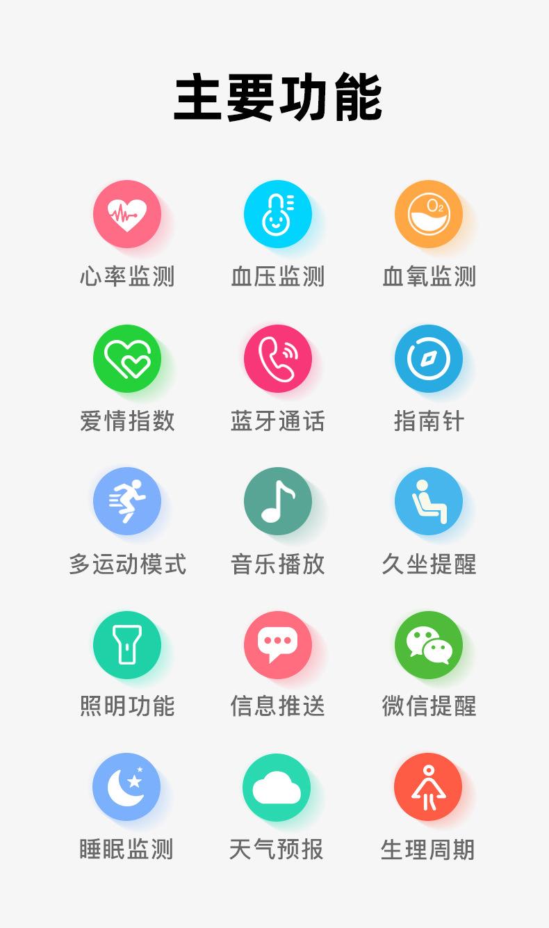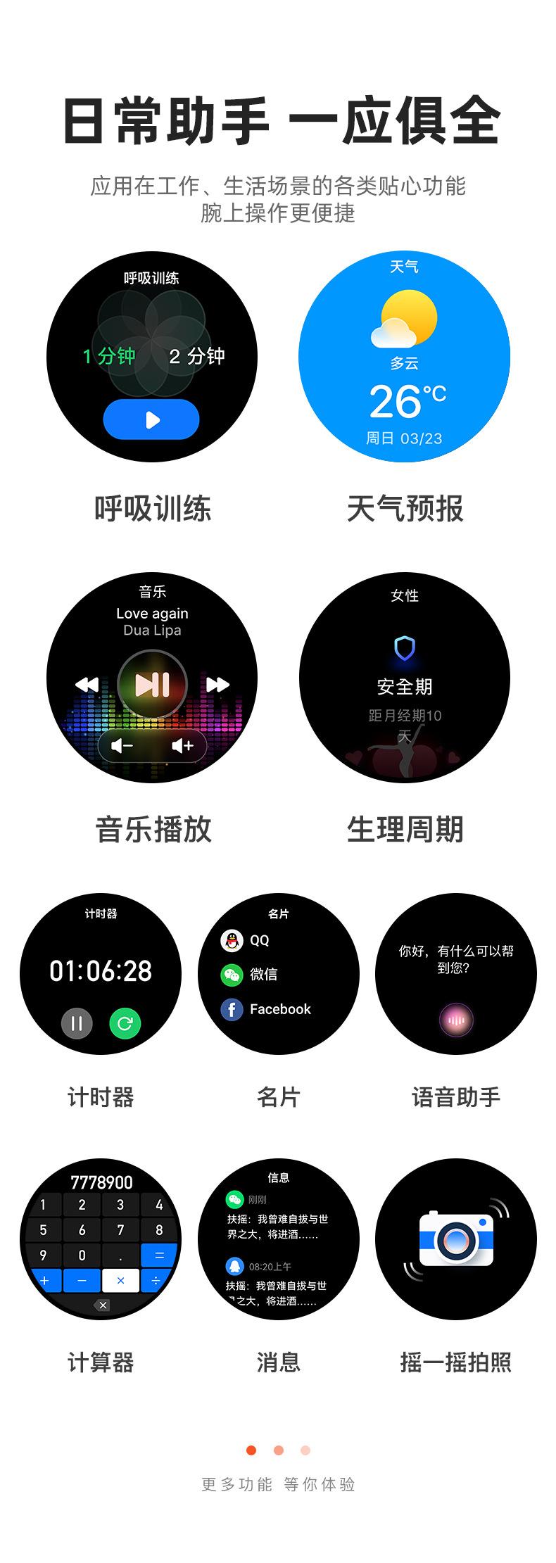 Waterproof, Take photos, Step counting, Heart rate monitoring, Social entertainment, Measure body temperature,...