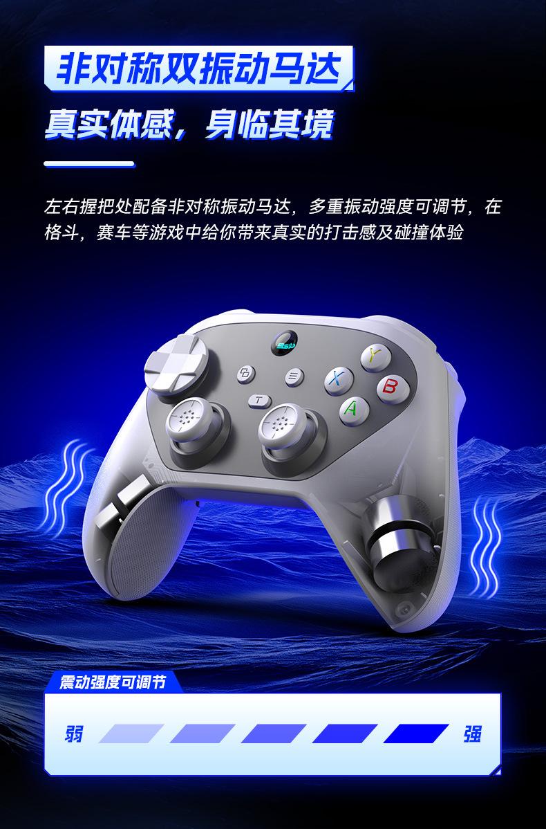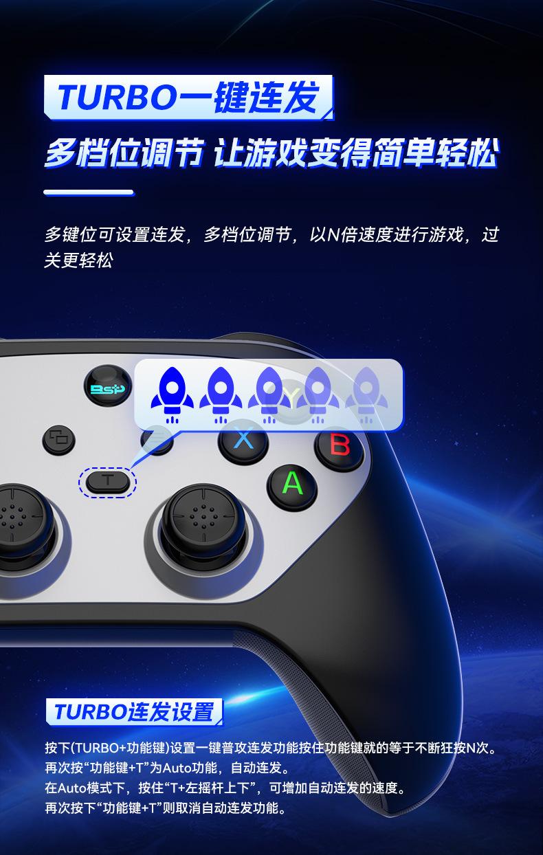 3. Giroscopio somatosensorial de seis ejes, botón trasero con programación macro, motores de vibración dual ajustables y ráfaga de un botón TURBO.