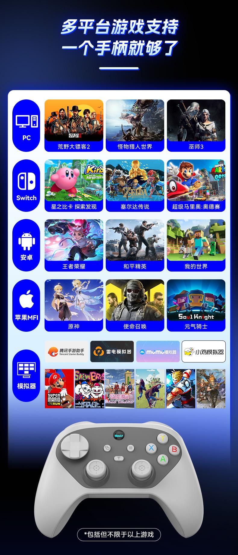 5. Soporte para juegos multiplataforma: Switch, PC, Android, Apple MIFI, simulador;