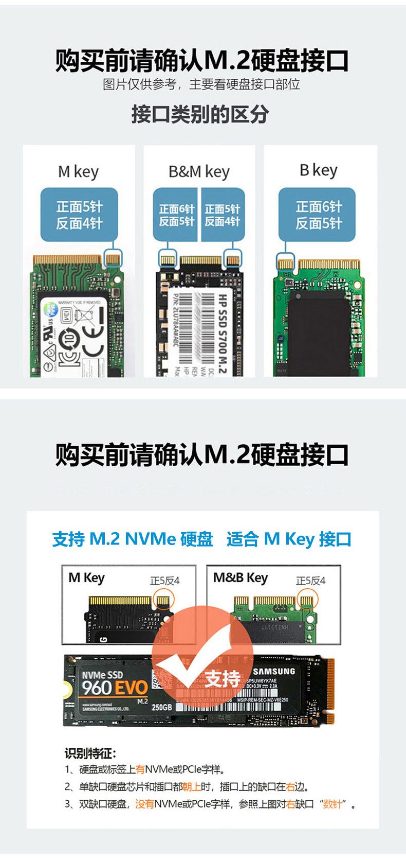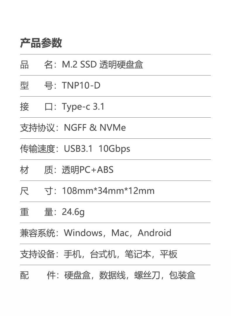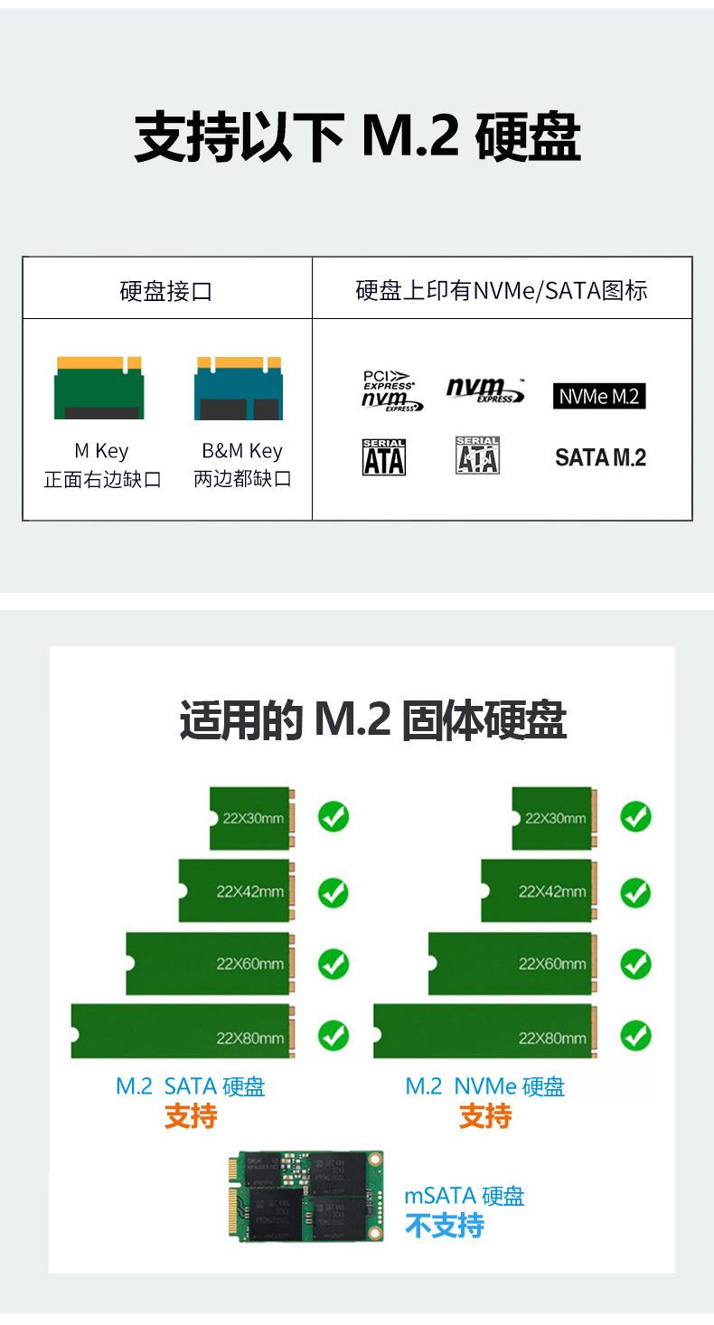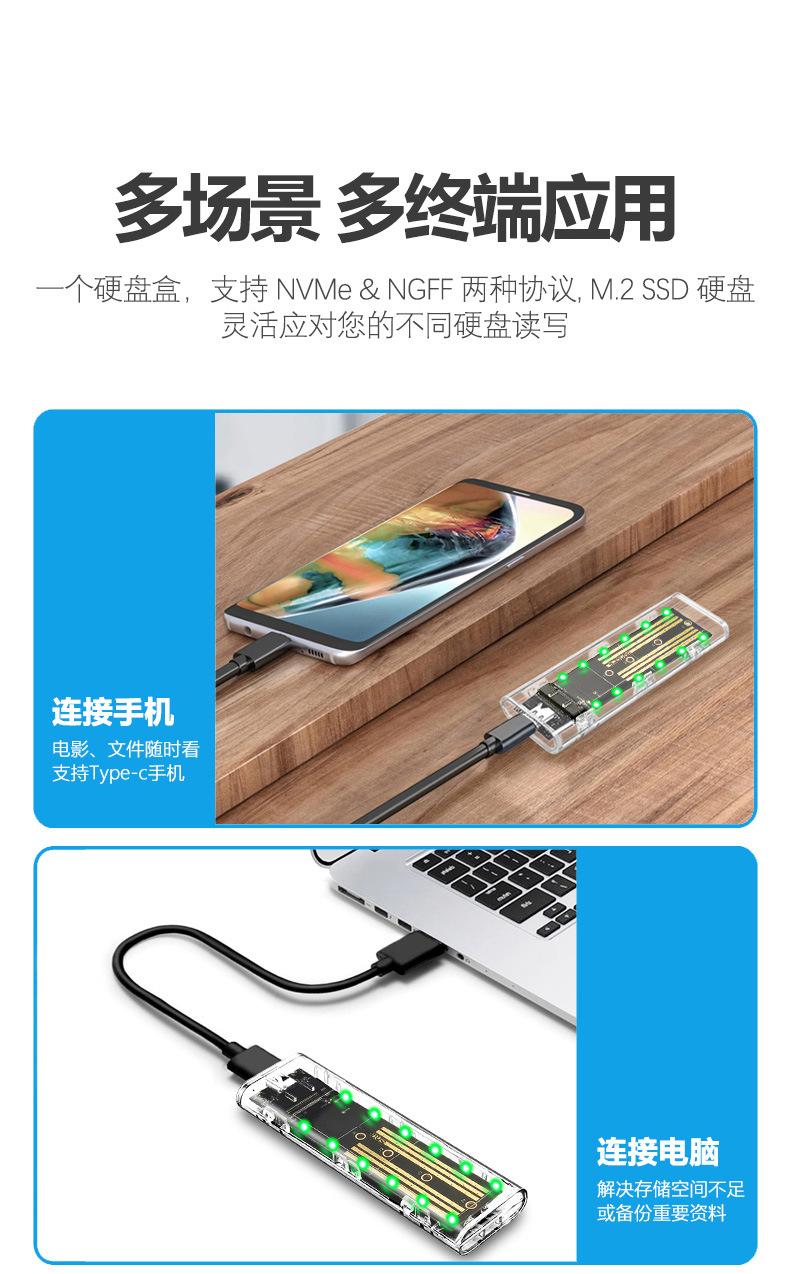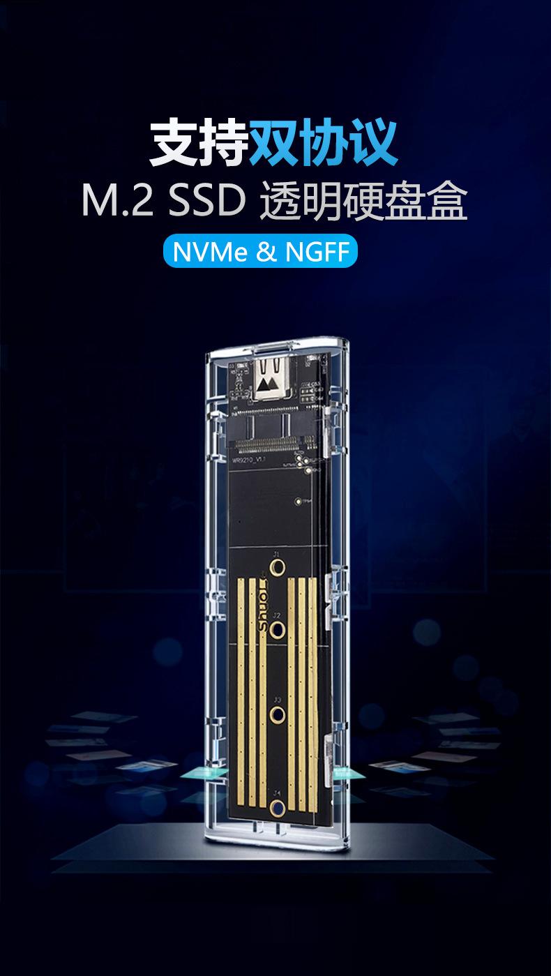 Caja de disco duro de estado sólido M.2 USB 3.1/Tipo C de alta velocidad con protocolo dual NVME/NGFF, caja de disco duro móvil externa