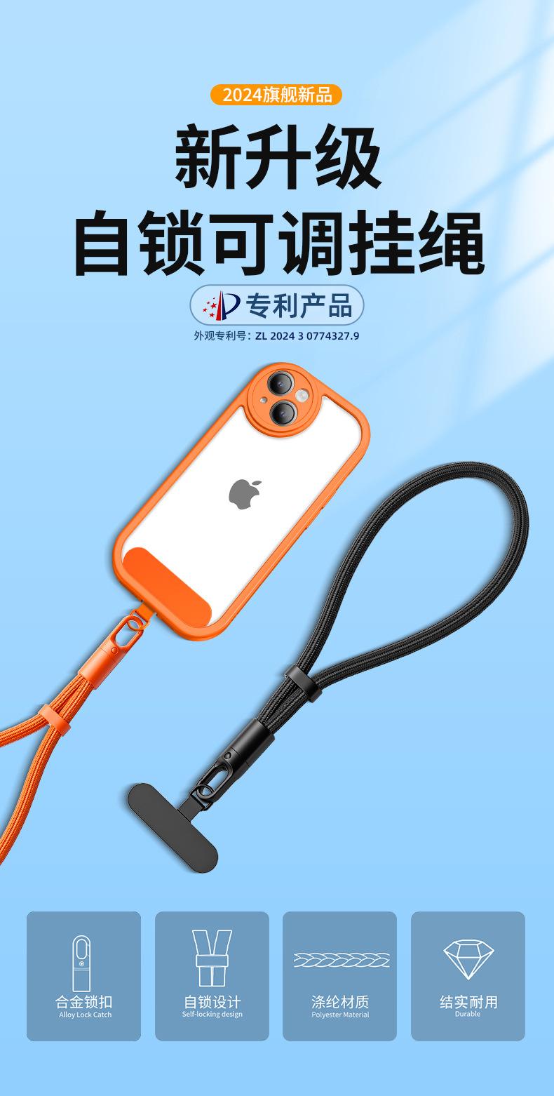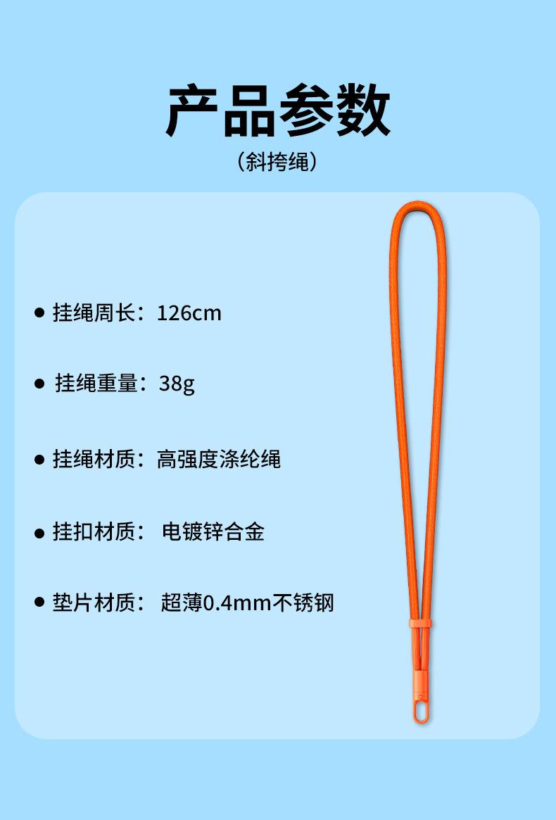 Adjustable crossbody cord [360 ° Rotate·emma orange】7mm thickened rope + stainless steel clip