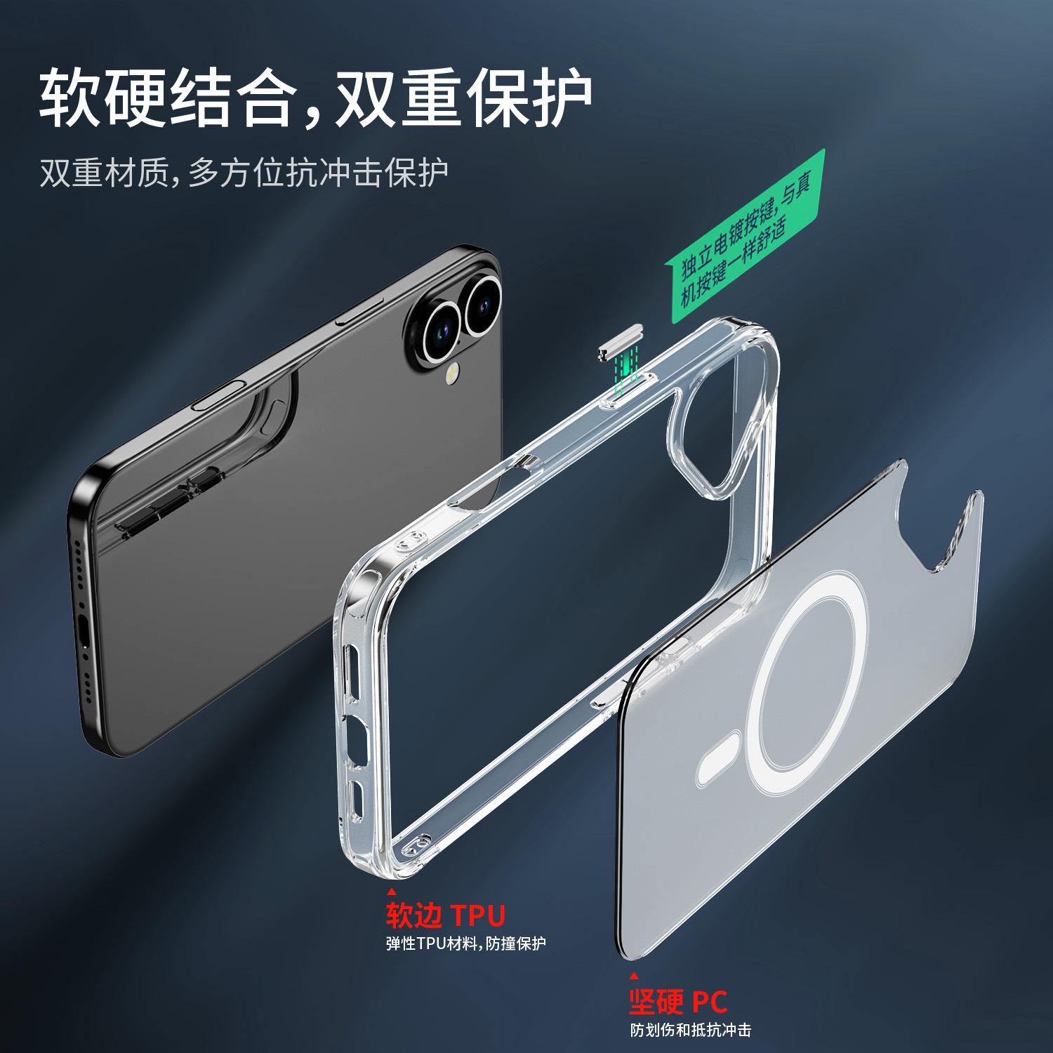 Funda para Teléfono iPhone Anti-Caída 2.0 Anillo Magnético Adecuado para Funda Protectora para Teléfono Apple Material Crudo Anti-Amarilleo Funda de Teléfono Transparente