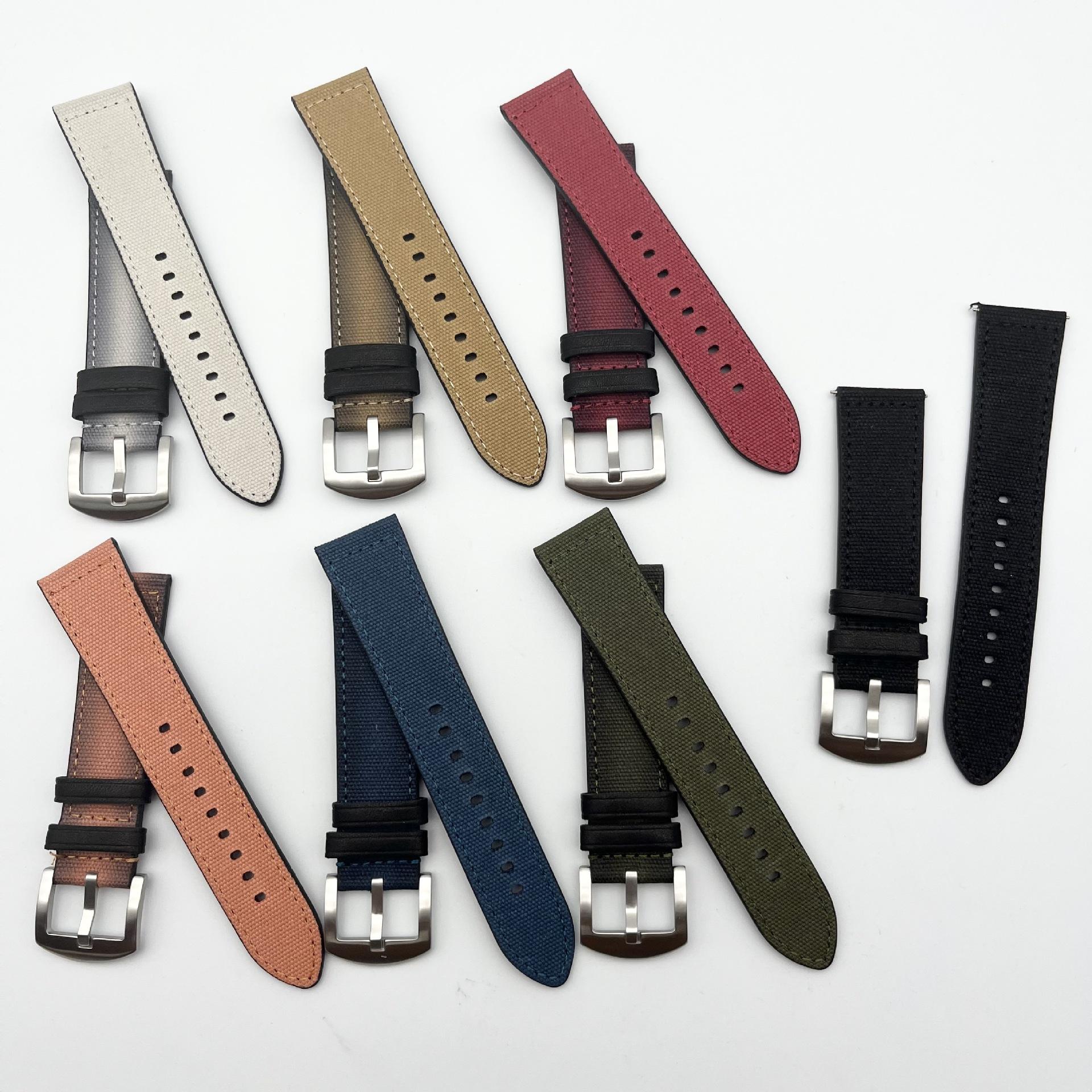 Nombre del producto: Venta al por mayor de fabricante adecuado para correa Huawei GT5 retro color frotado lona pulsera nailon color contraste degradado hombres 20mm22m |