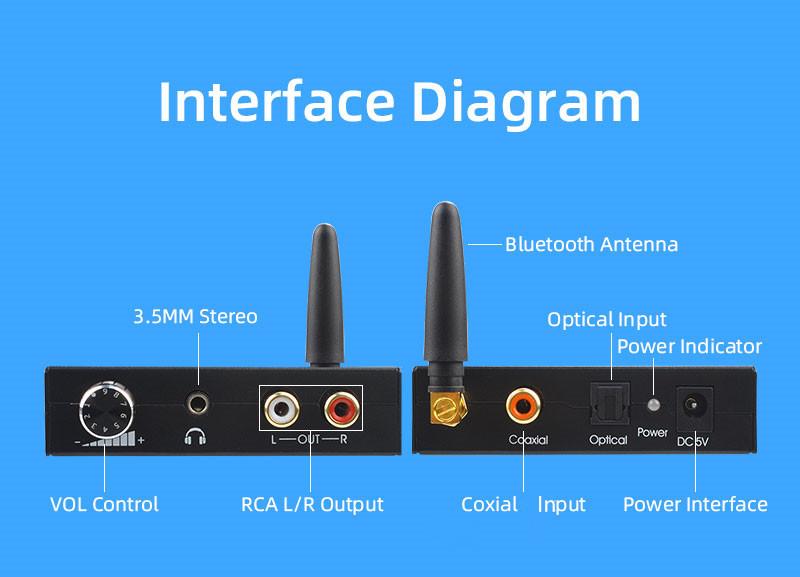 Decodificador de audio DAC digital a analógico Bluetooth 5.0 192 Khz transfronterizo de fibra óptica coaxial de 3.5 canales izquierdo y derecho