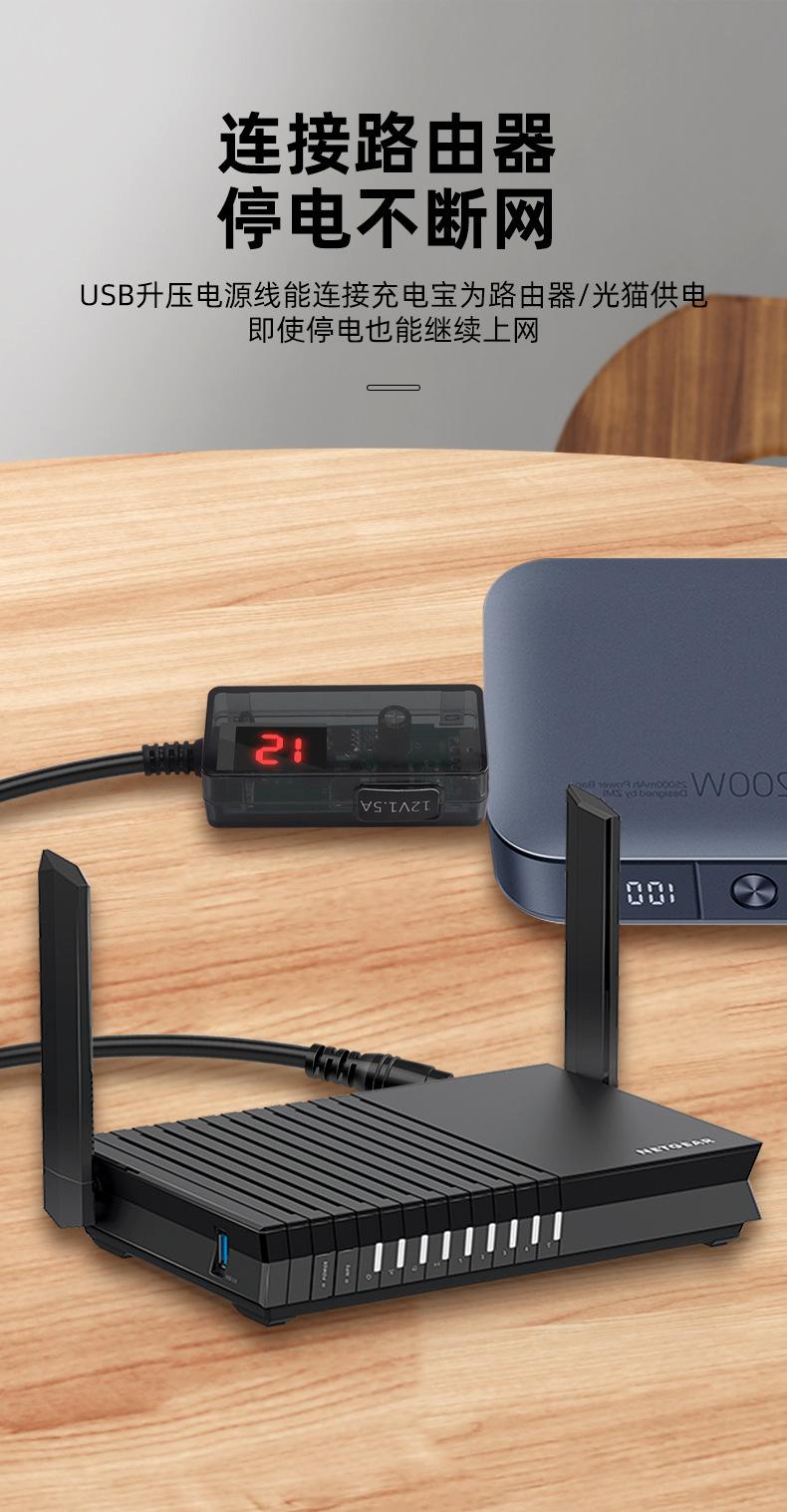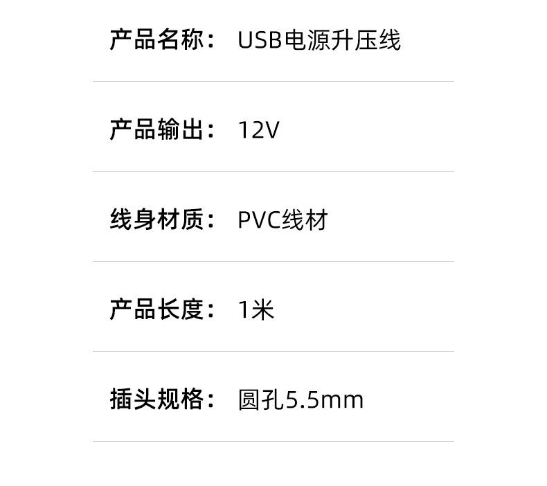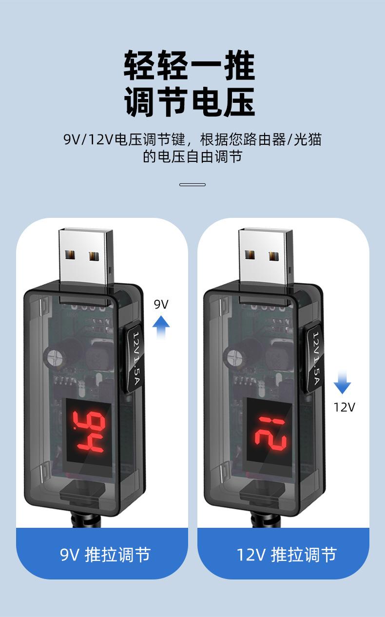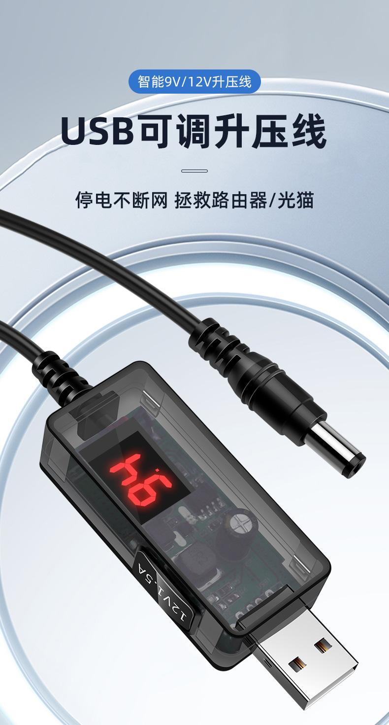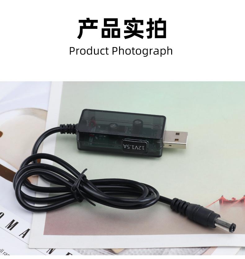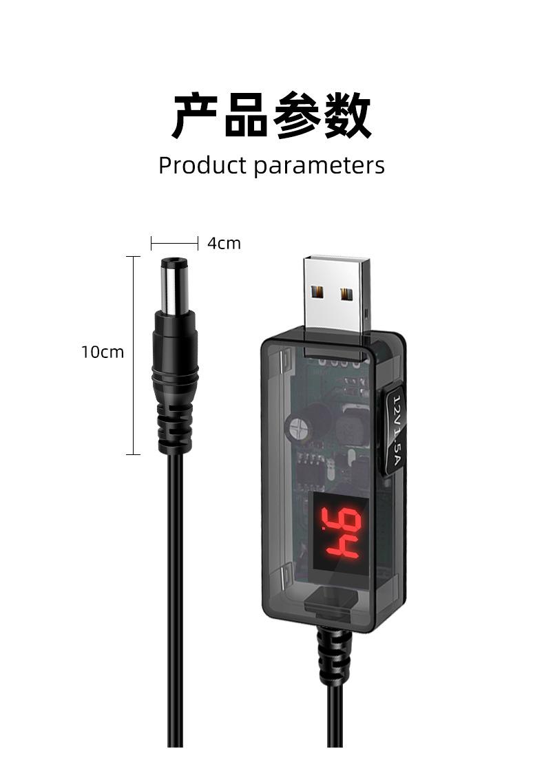 Línea elevadora USB ajustable de alta potencia 12V litro 1.5A router luz gato pequeño altavoz de amor cable de alimentación transparente