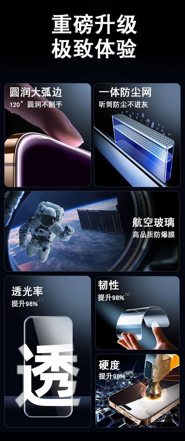 Black border ultra-clear tempered film (earpiece dustproof), Black edge blue light tempered film (earpiece dus...