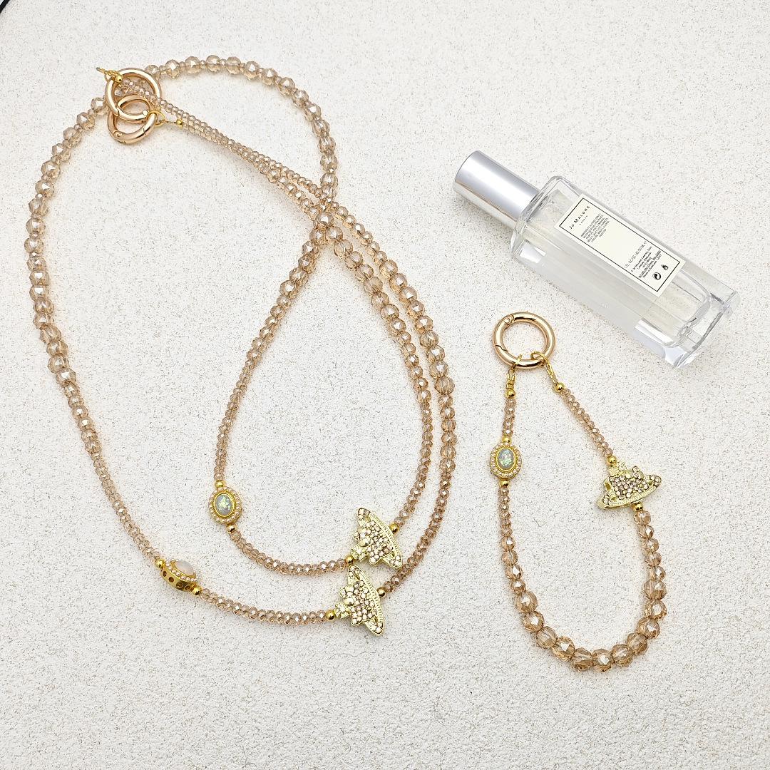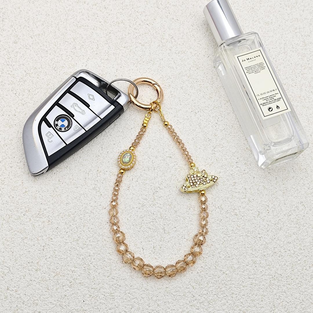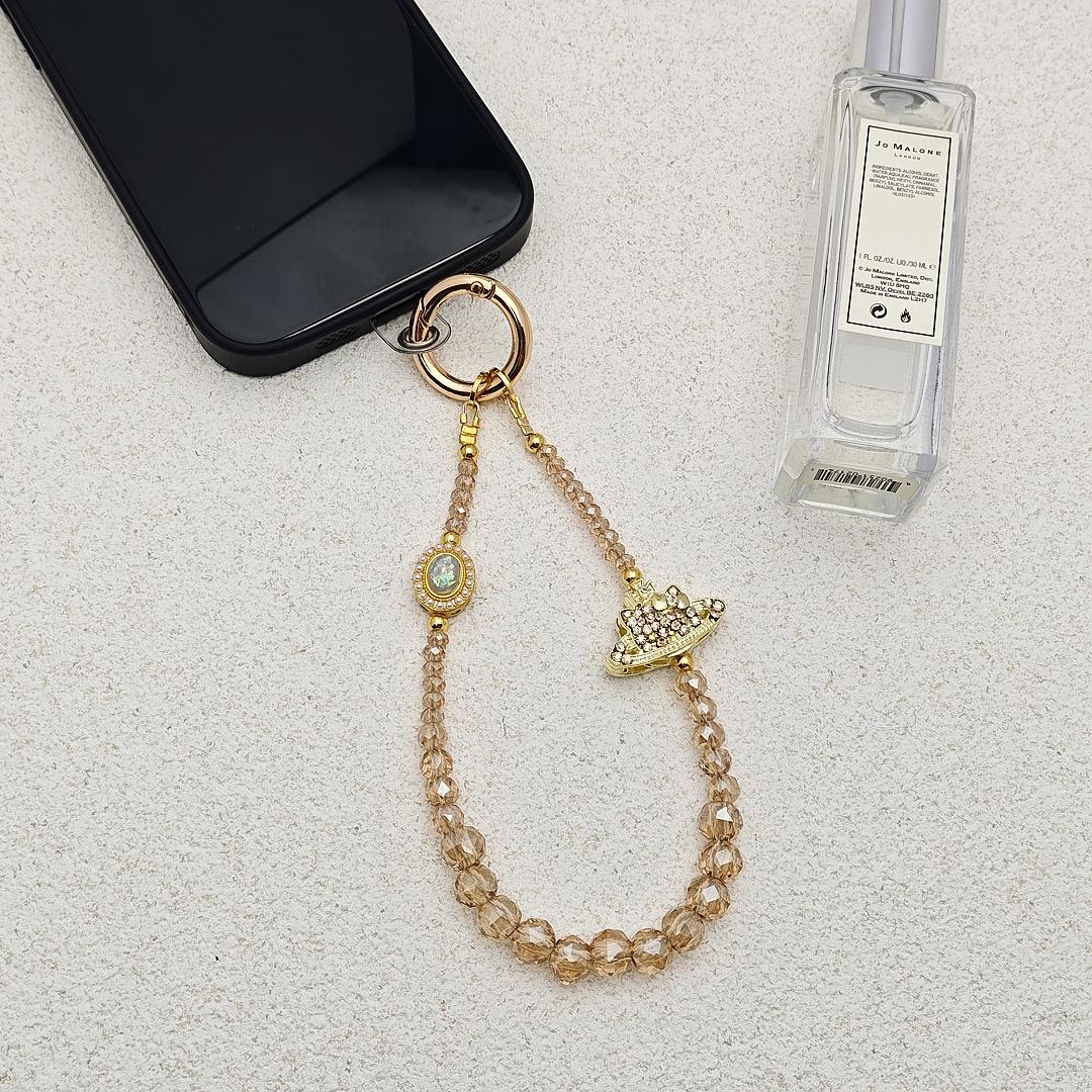 [Platillo Volador Dorado] Cadena para Teléfono Móvil 2025 Moda Femenina Llavero Hecho a Mano Cordón para Teléfono Móvil Llavero