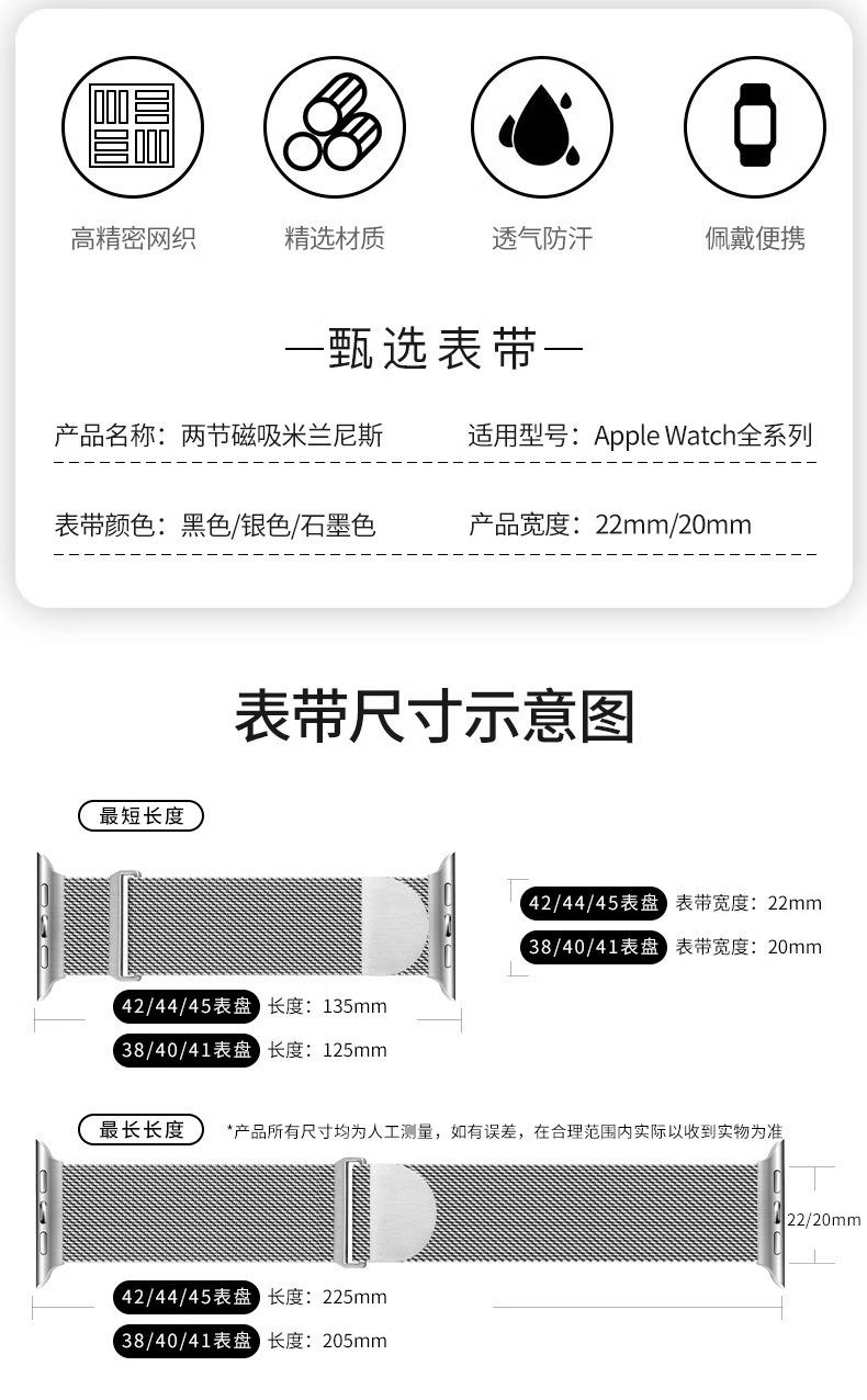 Adecuado para Appleiwatchs10 Correa de Apple Watch iWatch Generación 1-9 Milanés Se Metal Succión Magnética