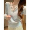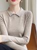 Camisa de punto con cuello vuelto y costuras para mujer, estilo occidental, nueva primavera 2025, camiseta holgada de manga larga, camisa base fina