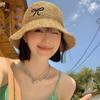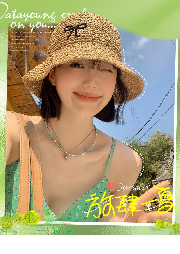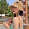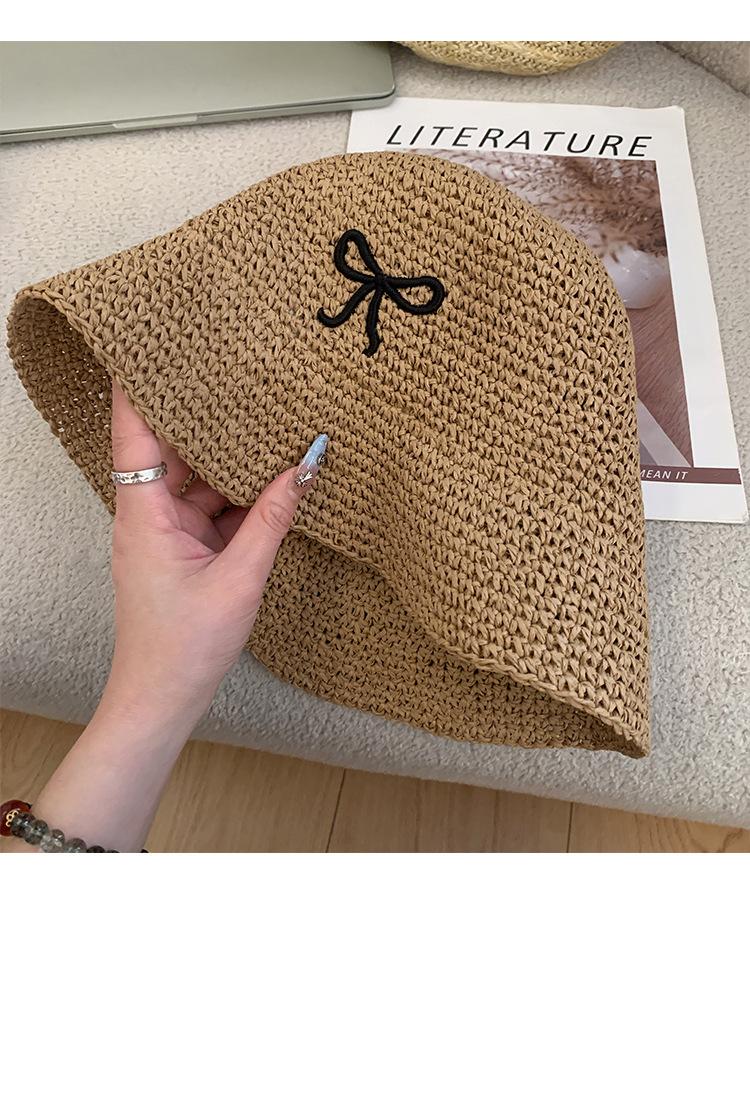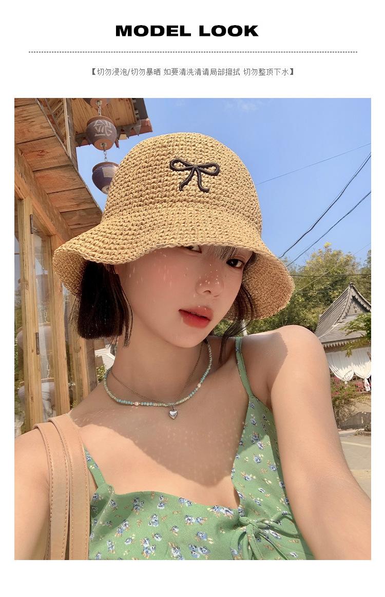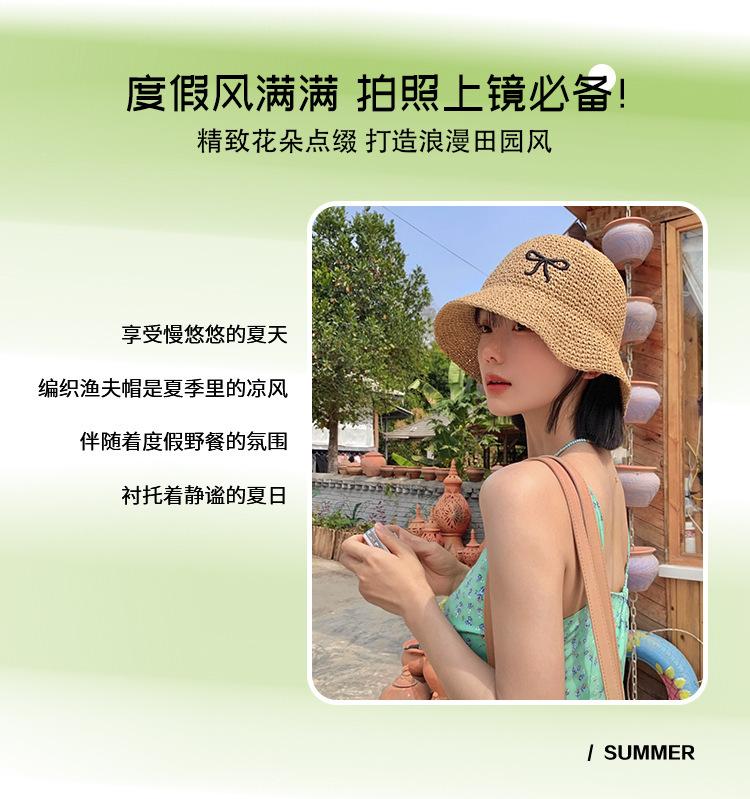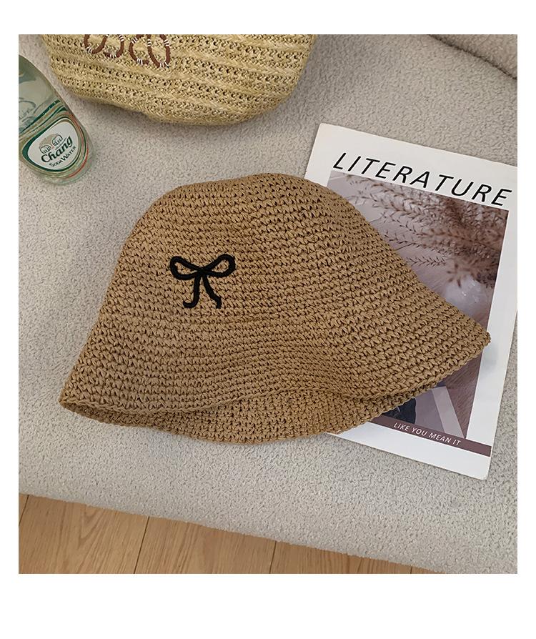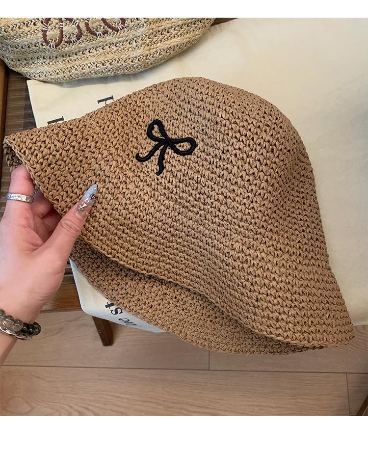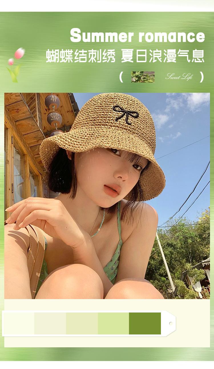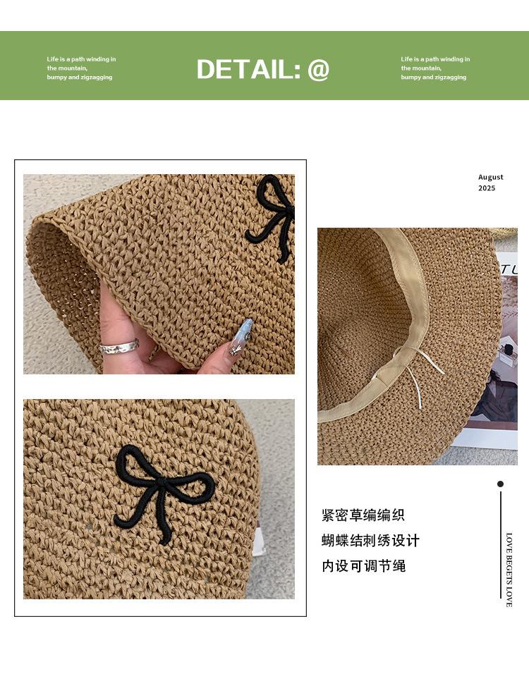 Sombrero de Paja Bordado con Lazo para Mujer 2025 Verano Nuevo Ala Ancha Playa Sombrilla Protector Solar Sombrero de Pescador