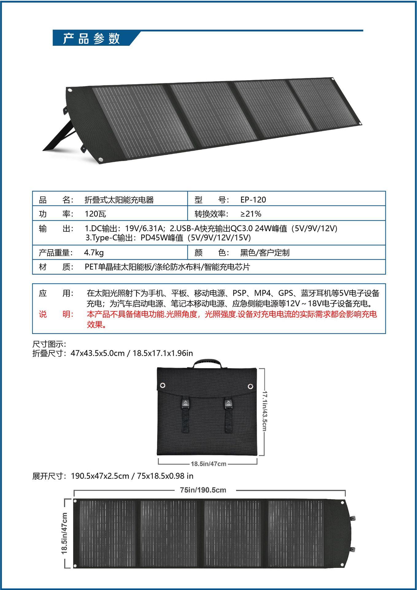 Panel solar plegable de 75 W/120 W para exteriores, portátil, de energía móvil