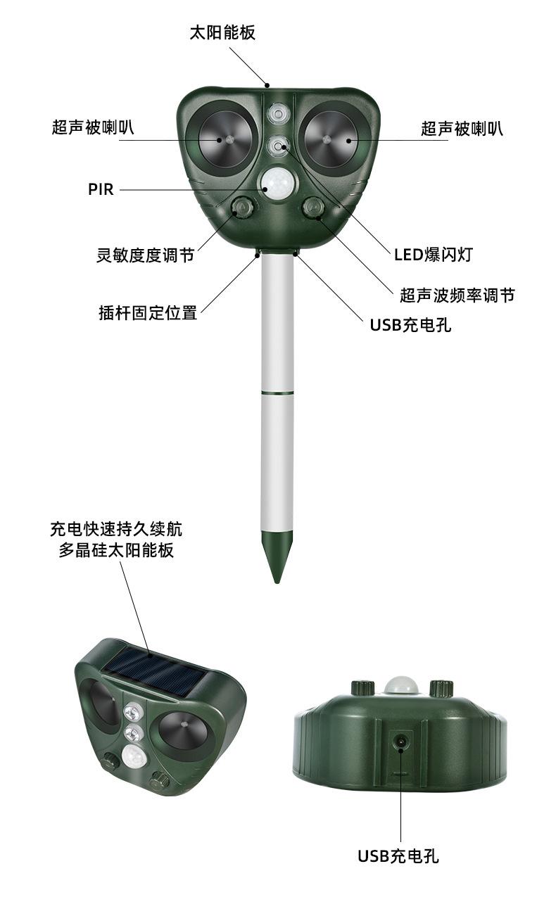Repelente solar para animales, multifuncional, para pájaros, gatos, césped y patio, repelente ultrasónico.