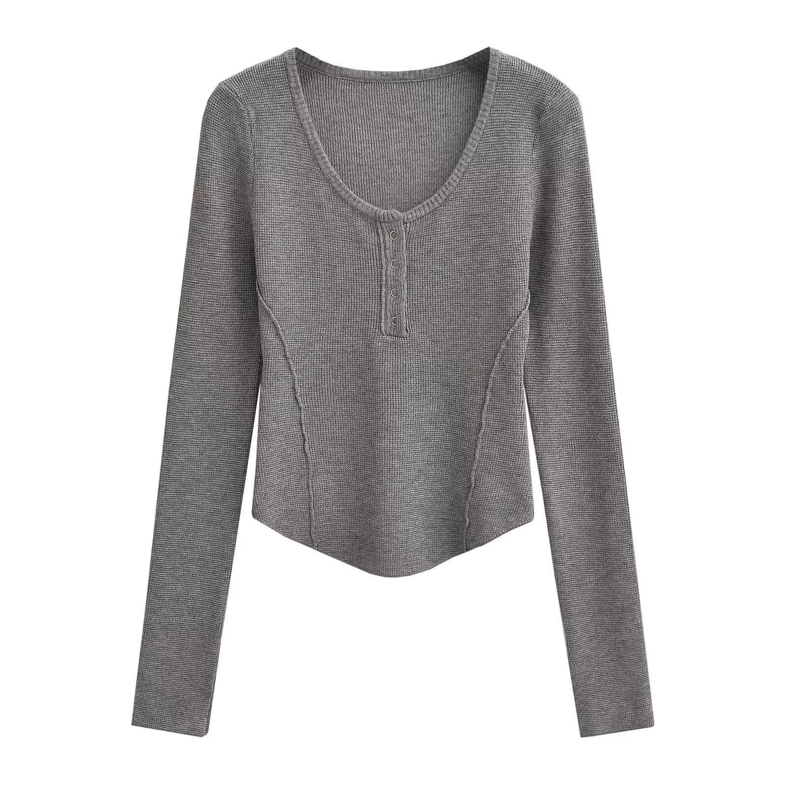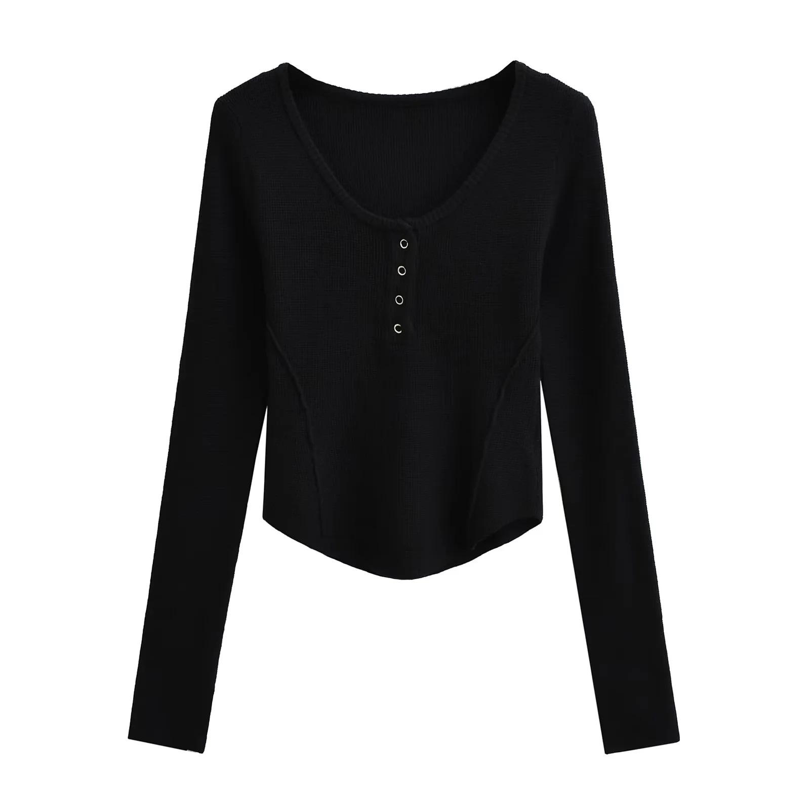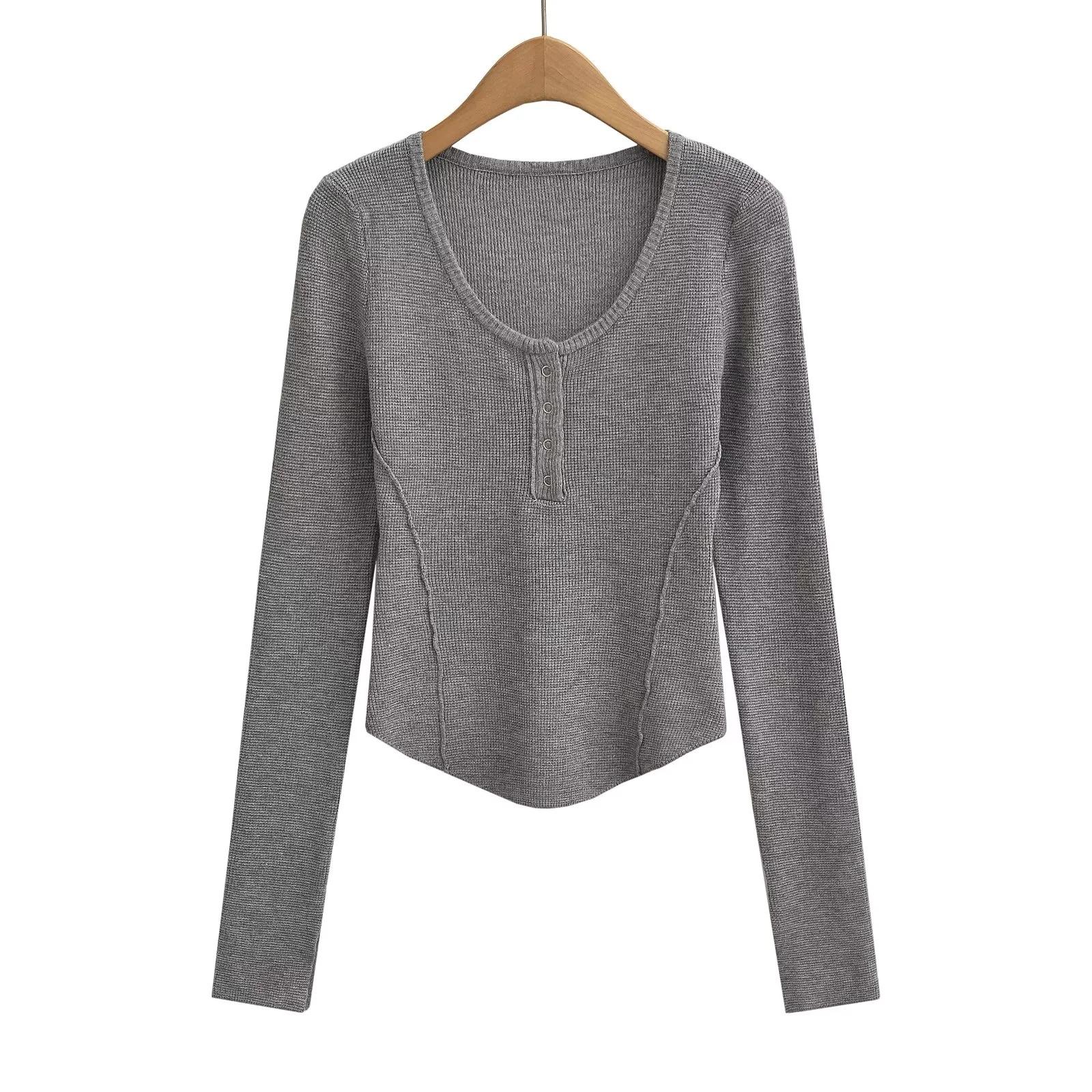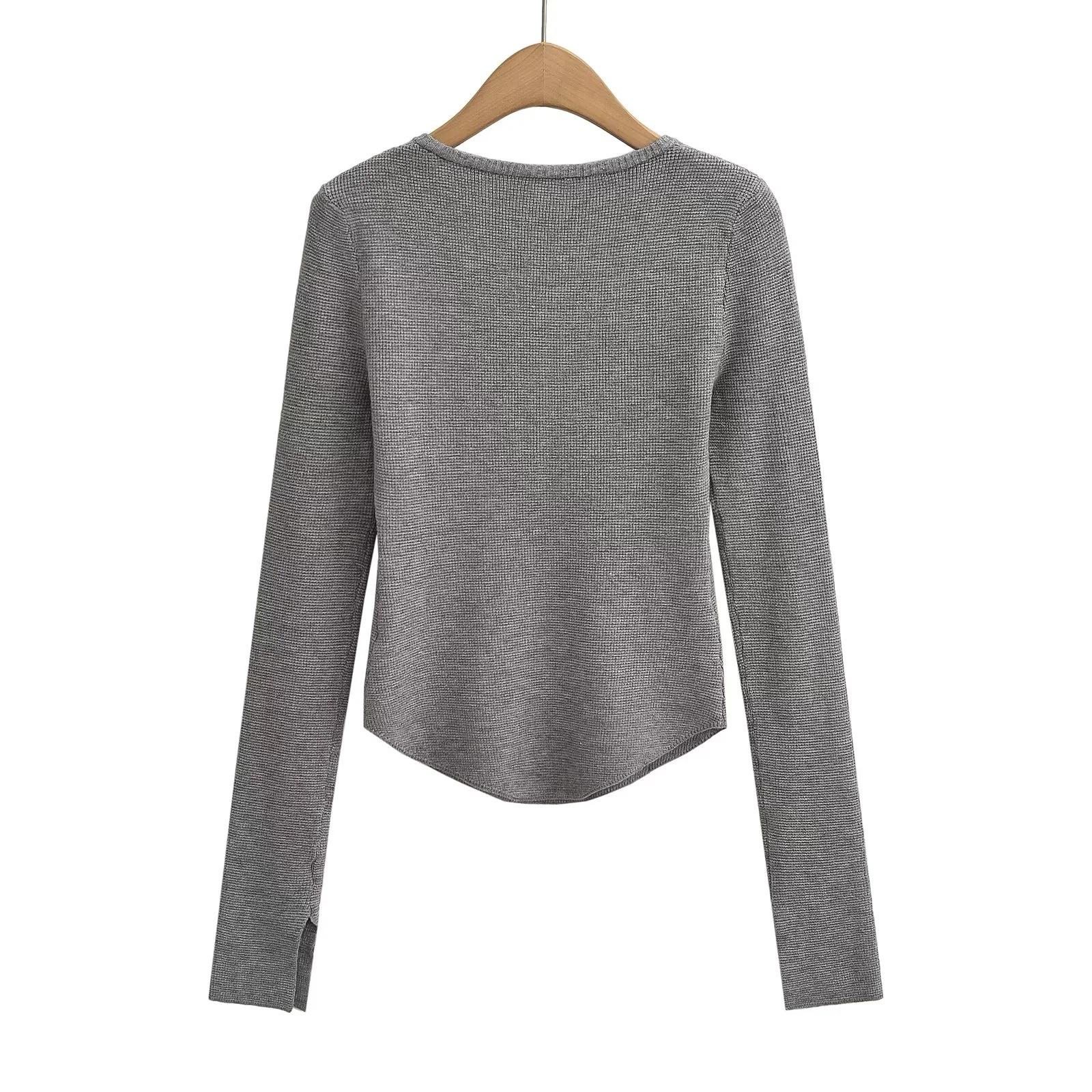 Suéter adelgazante con escote en V pequeño y abertura en el pecho para chica europea y americana 2024, suéter de temperamento nicho para mujer