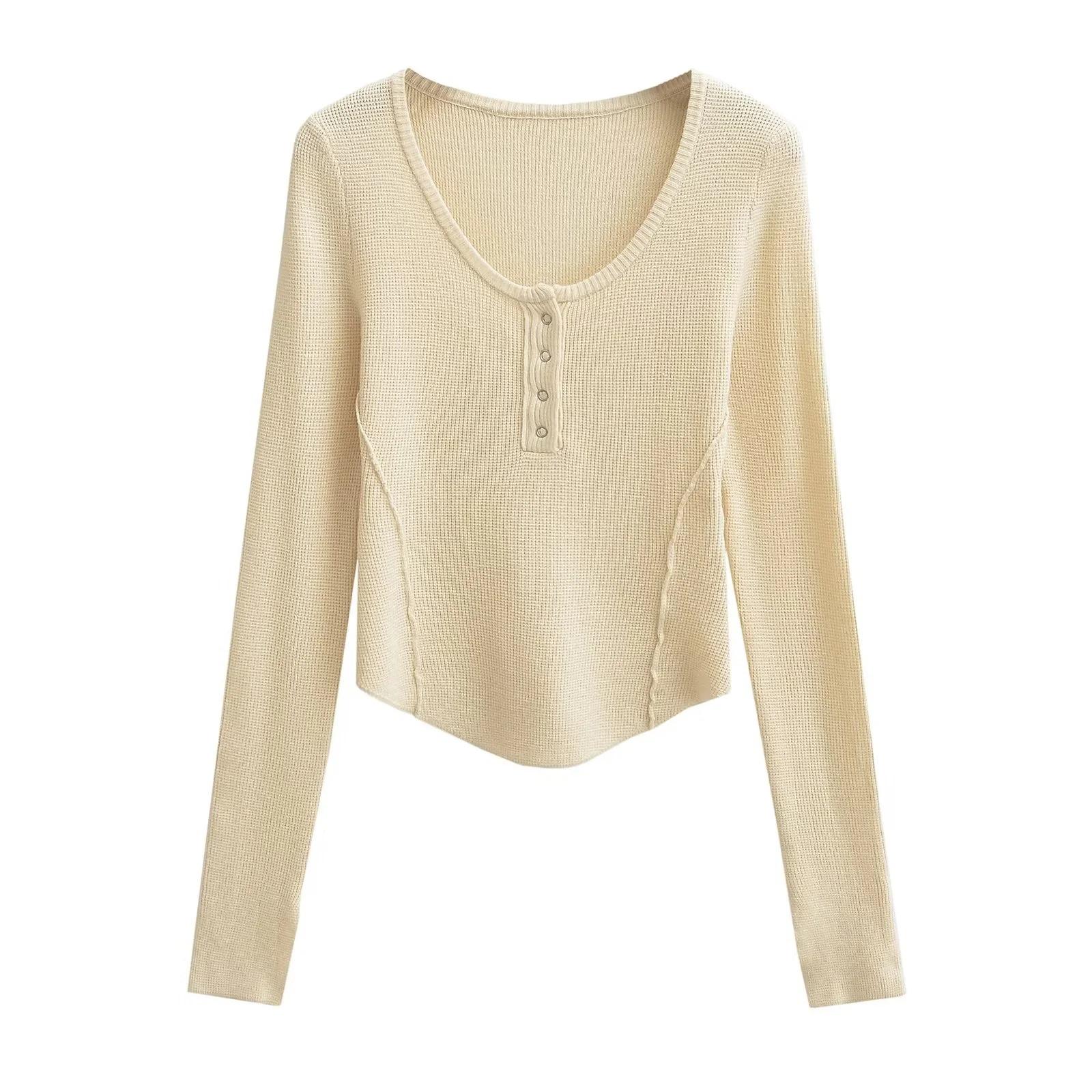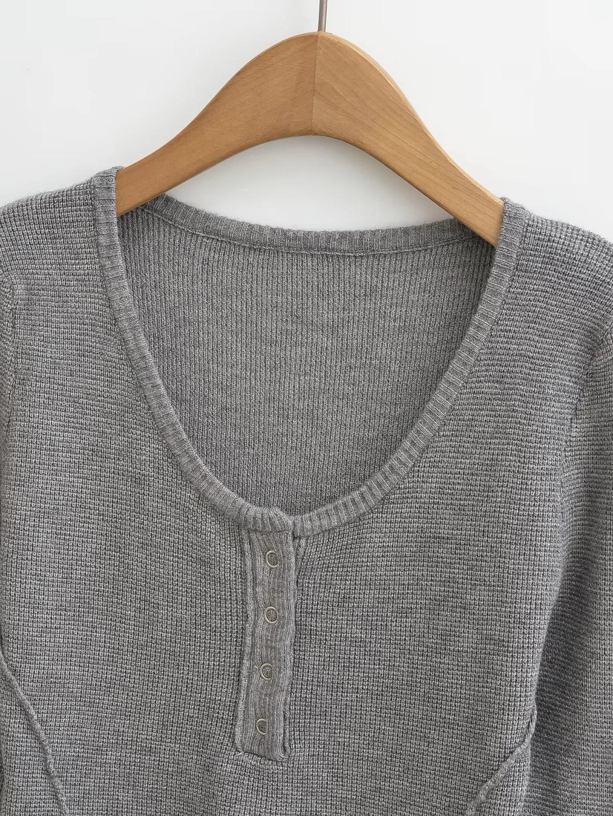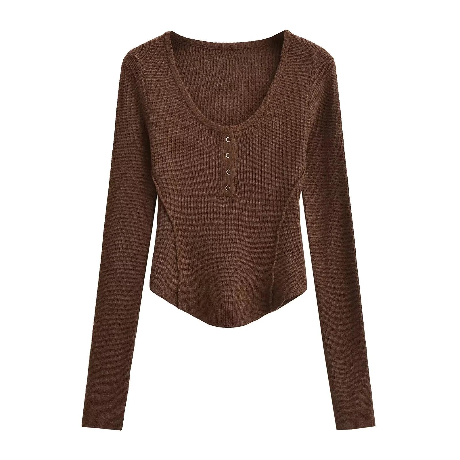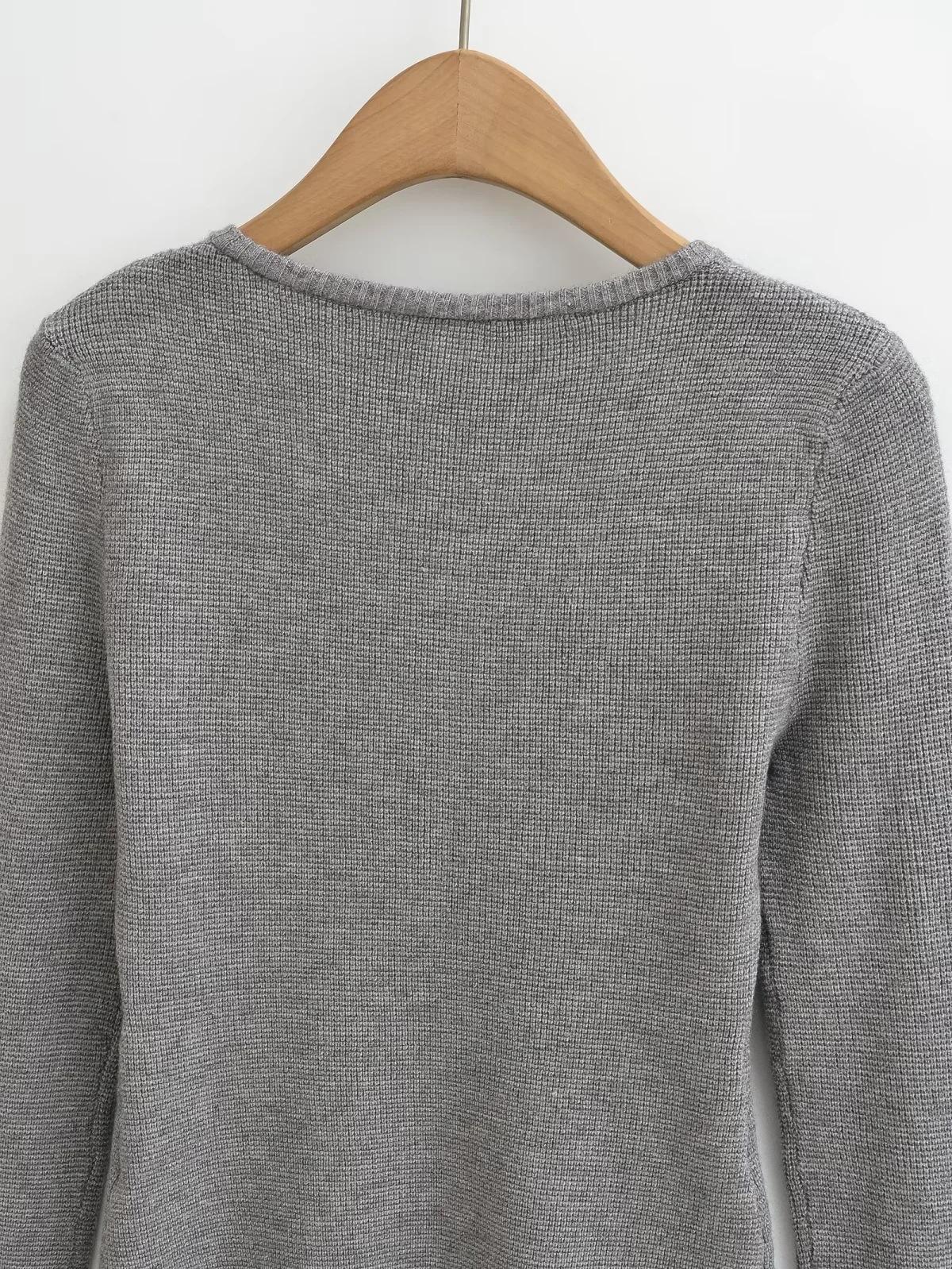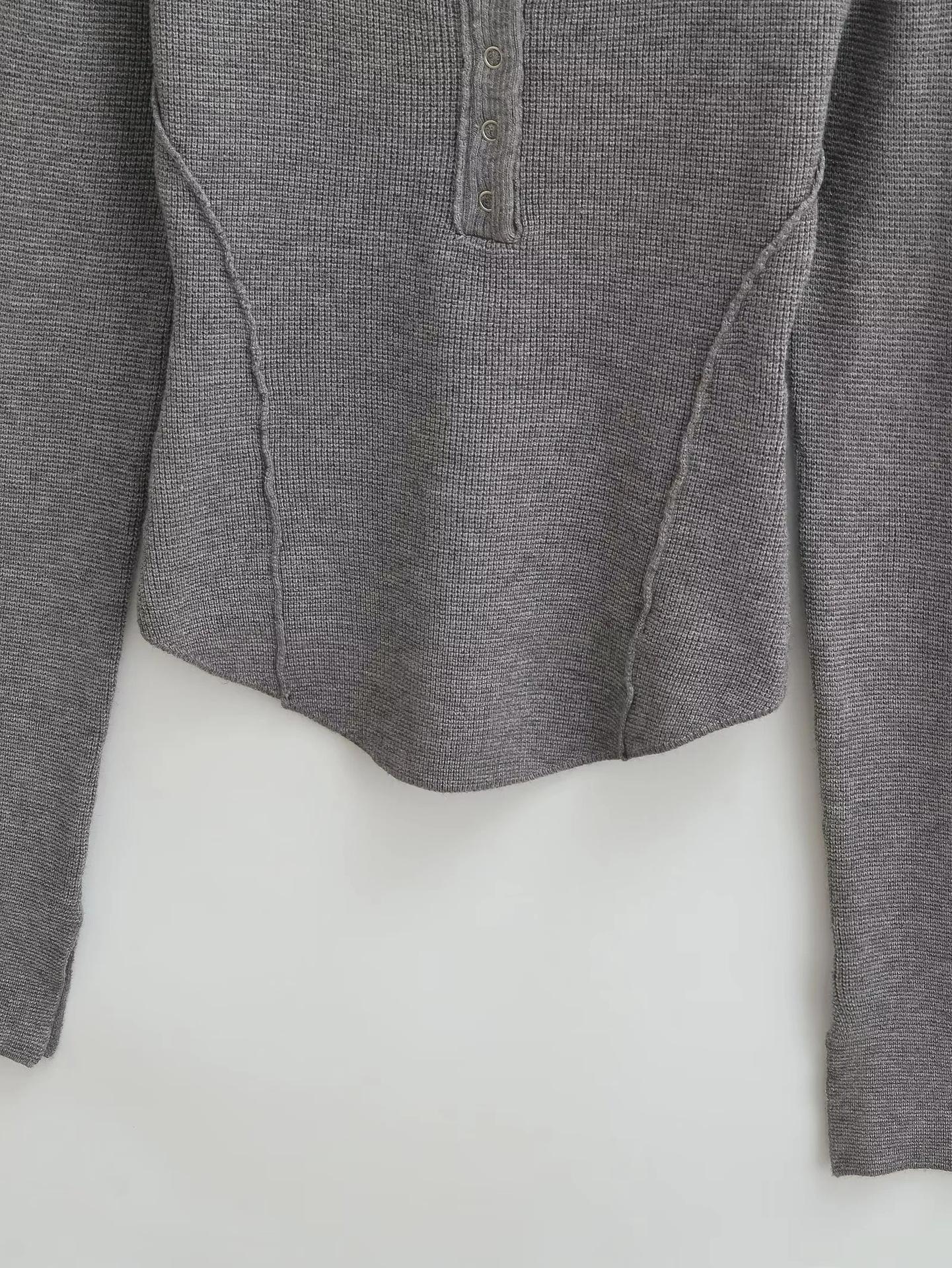 Suéter adelgazante con escote en V pequeño y abertura en el pecho para chica europea y americana 2024, suéter de temperamento nicho para mujer