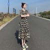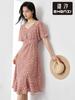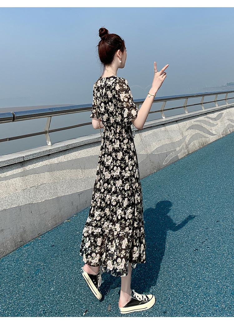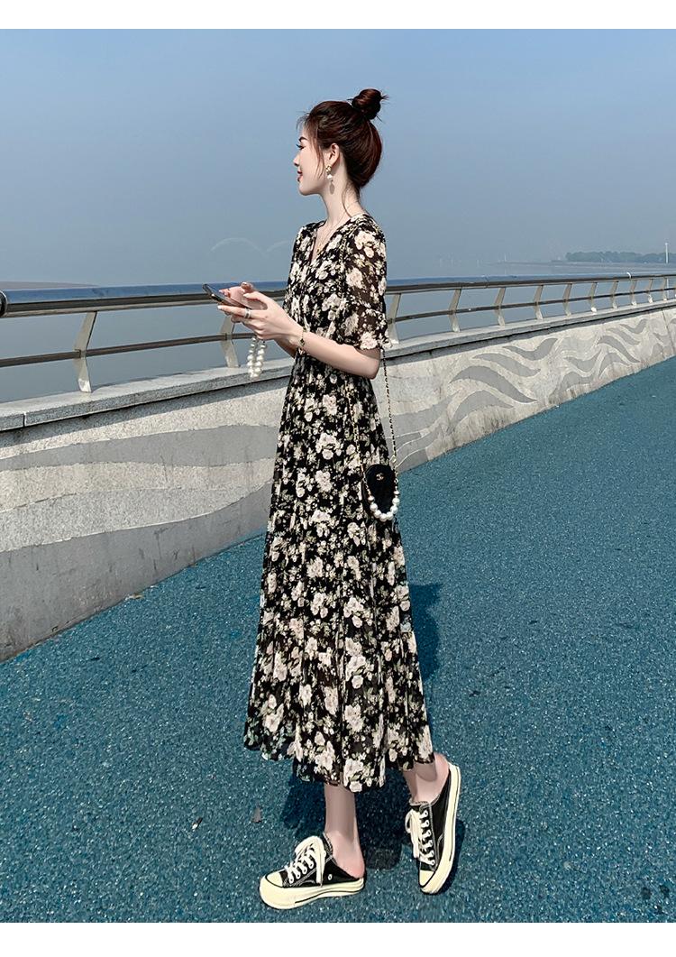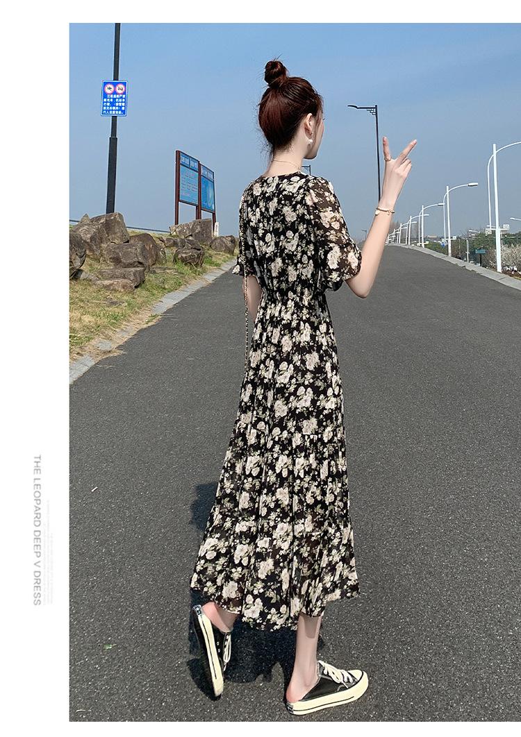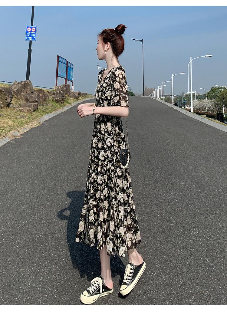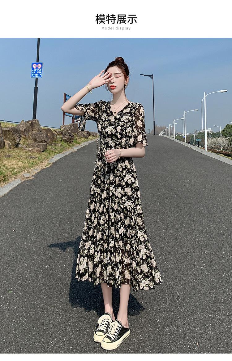 Vestido floral de cuello en V de longitud media para mujer, vestido de corte A con volantes y cintura adelgazante, novedad de verano de 2023