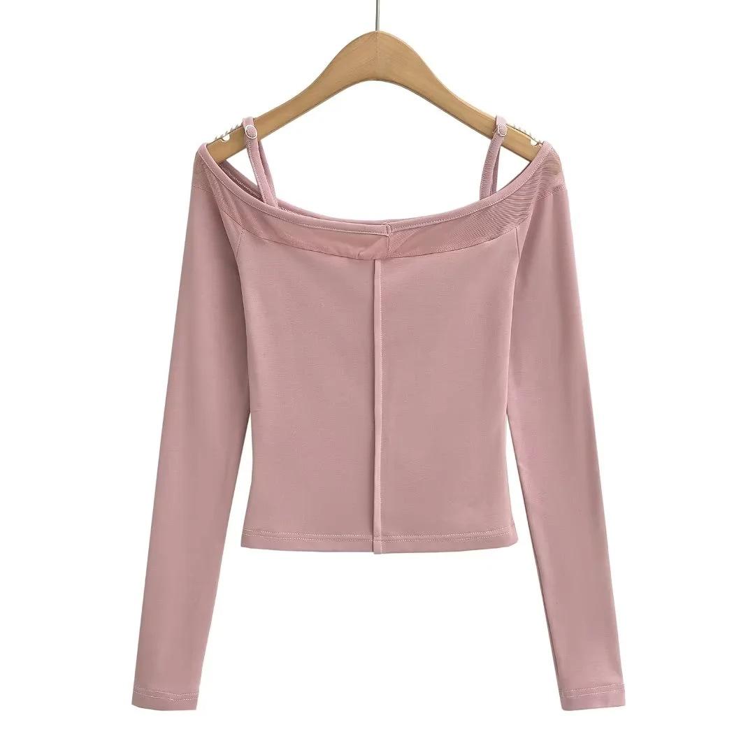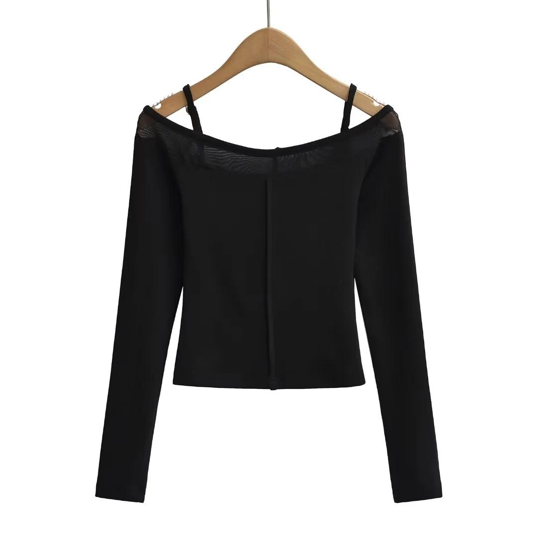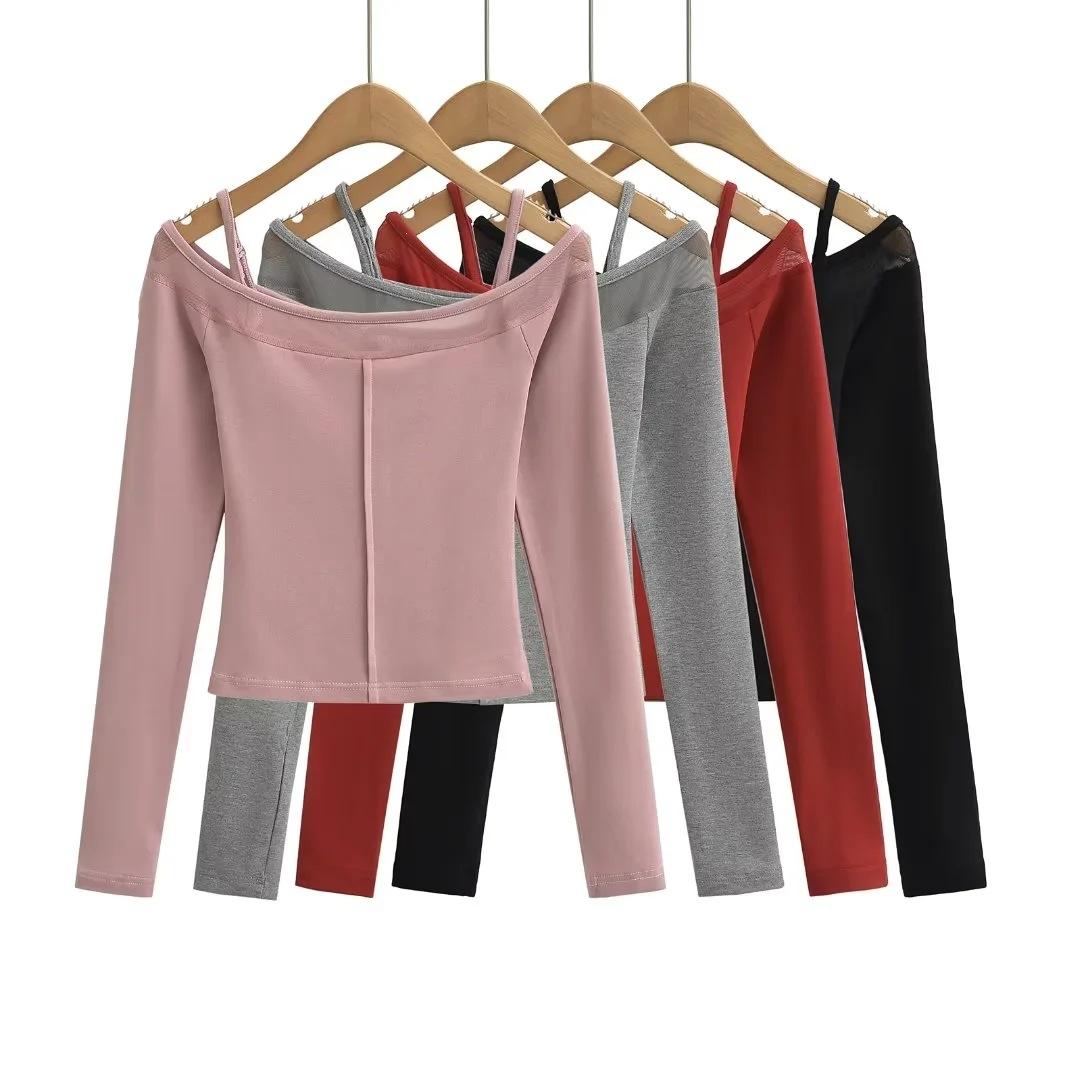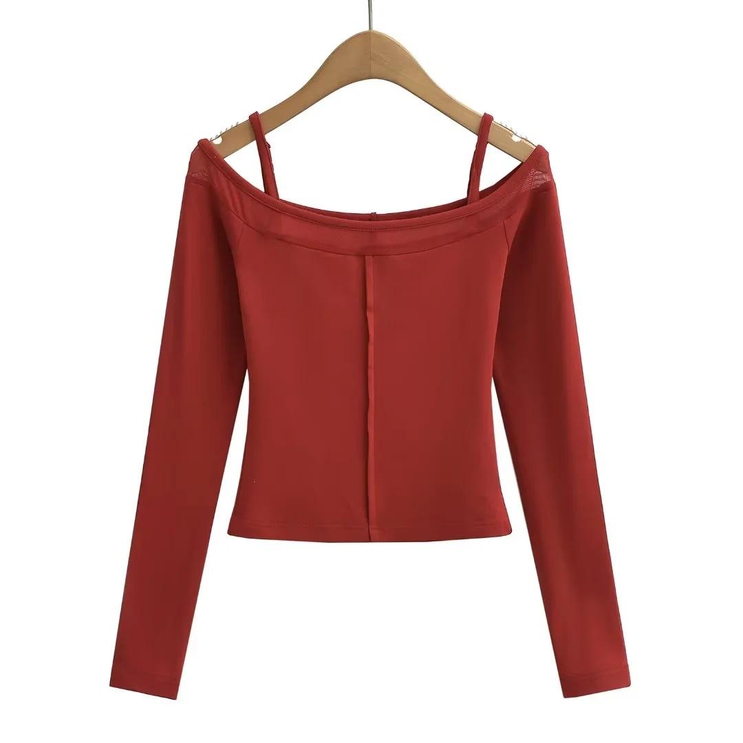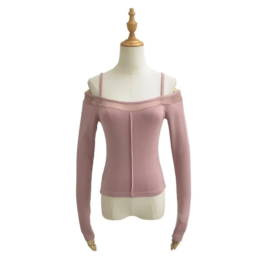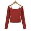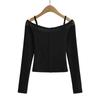 Camiseta básica sexy de color sólido con hombros descubiertos para mujer, estilo chica sexy, camiseta elástica de celebridad de Internet.