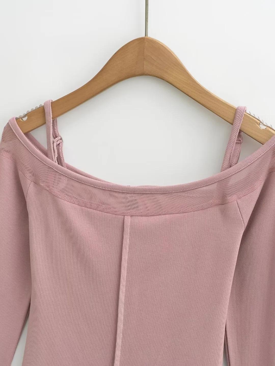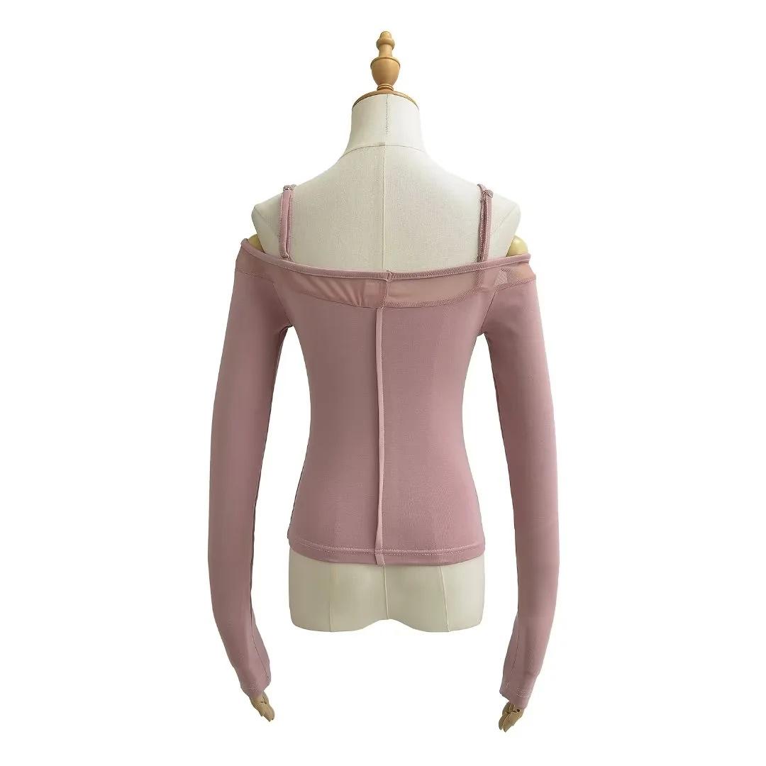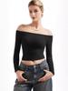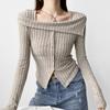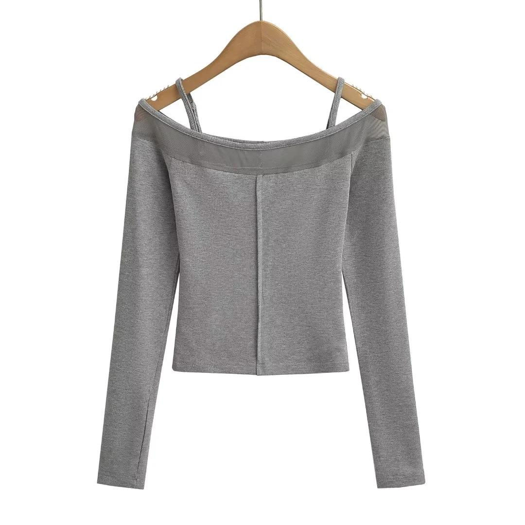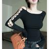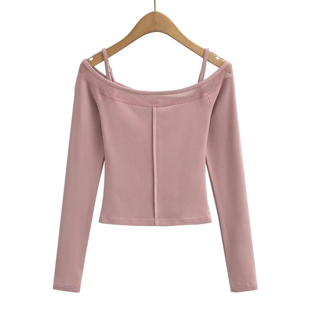 Camiseta básica sexy de color sólido con hombros descubiertos para mujer, estilo chica sexy, camiseta elástica de celebridad de Internet.