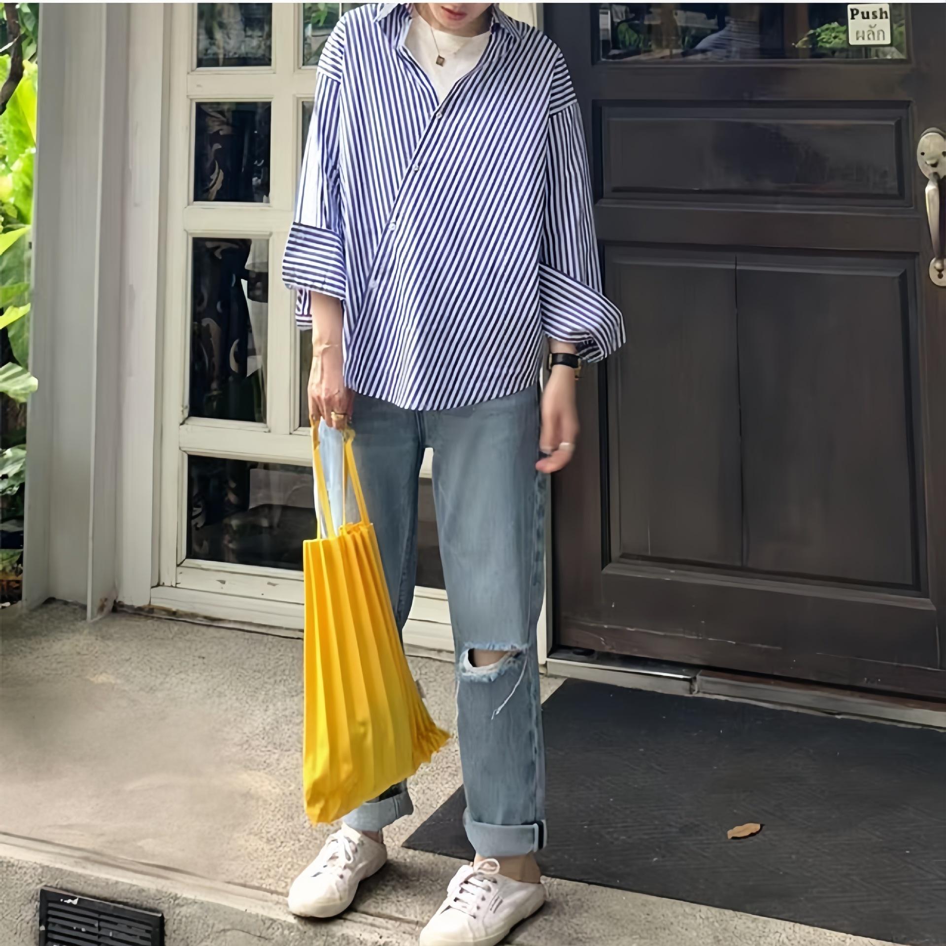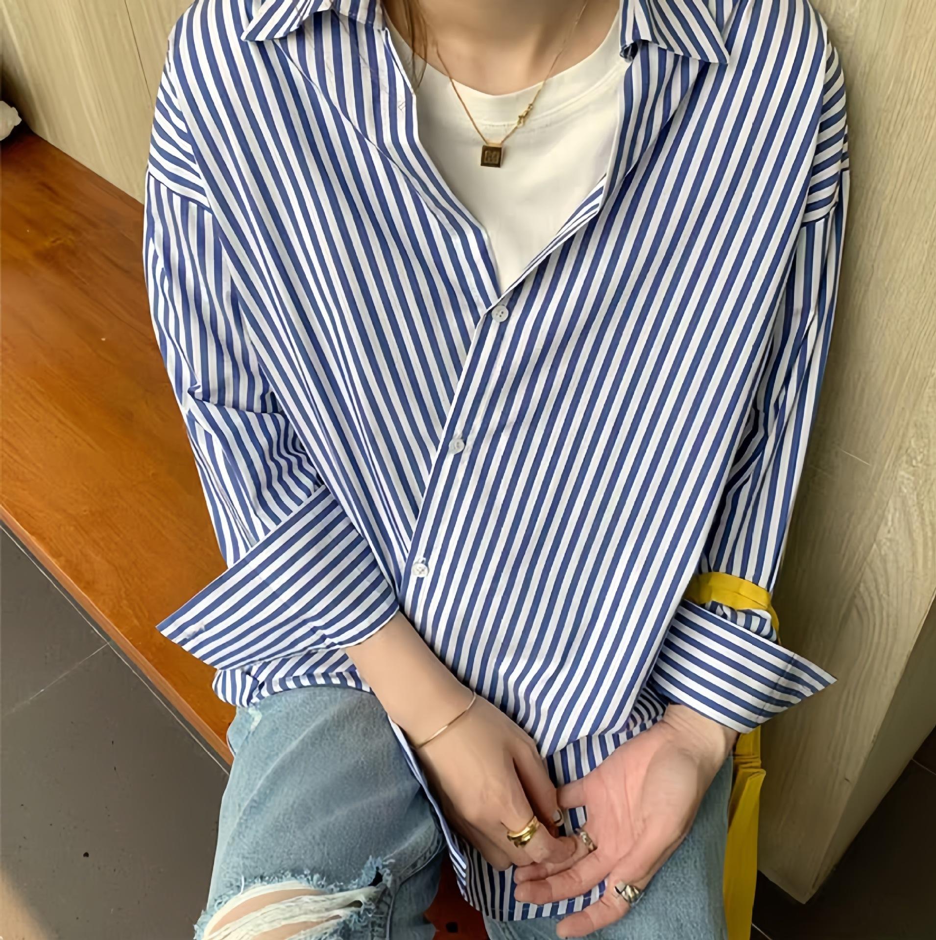 Camisa de manga larga con solapa y hebilla inclinada para mujer, nueva moda de primavera, diseño con cintura de encaje lateral