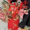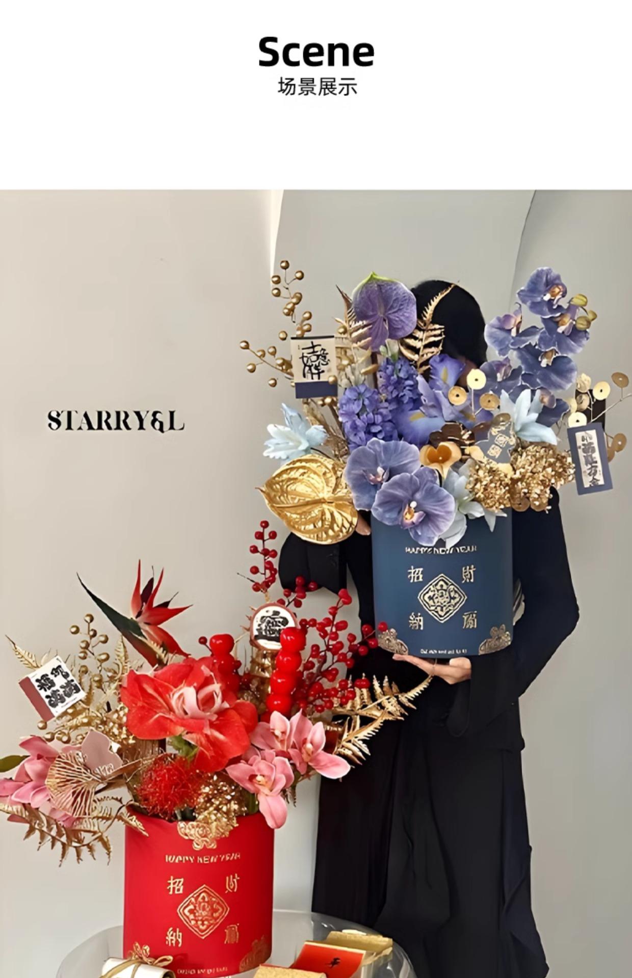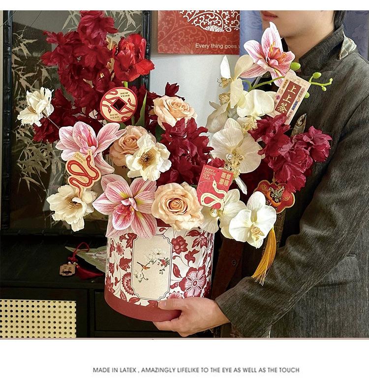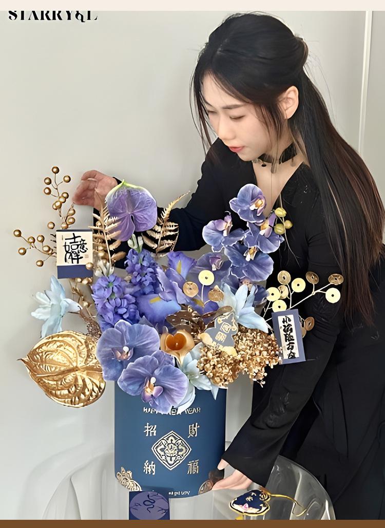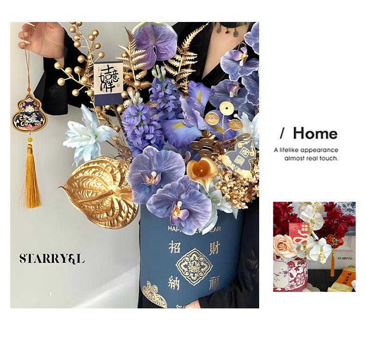 2025 Ramo de flores de cubo dorado caliente Cubo de flores Flor artificial DIY Decoración a juego Cubo de abrazo Adornos para sala de estar