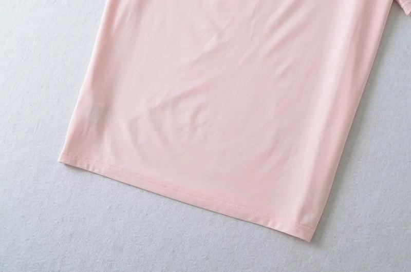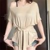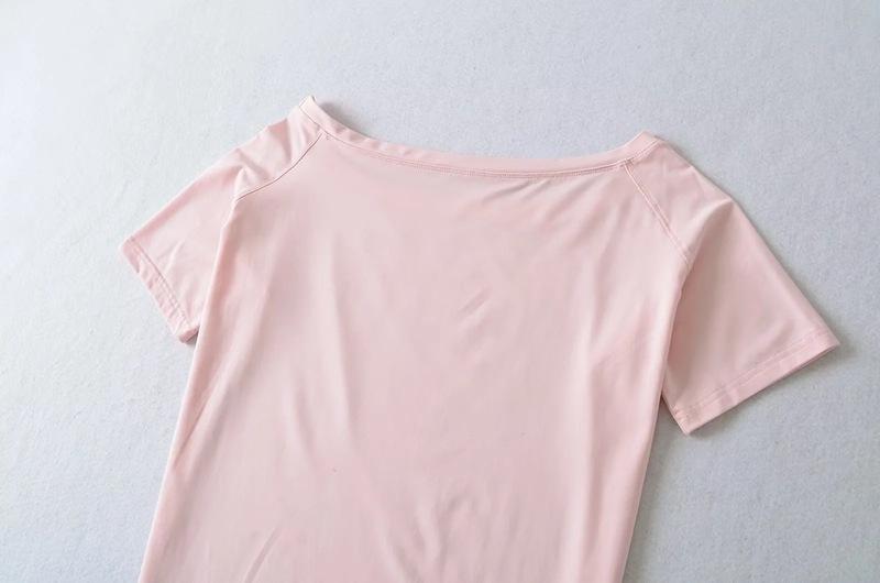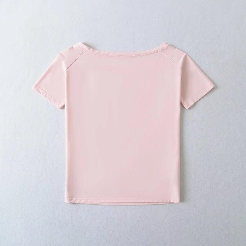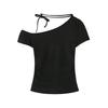 Estilo Deseo Puro Sexy Cuello Inclinado Hombro Descubierto Dos Usos Camiseta de Manga Corta Verano Suelta Delgada Hombro Descubierto Estilizada Top Básico