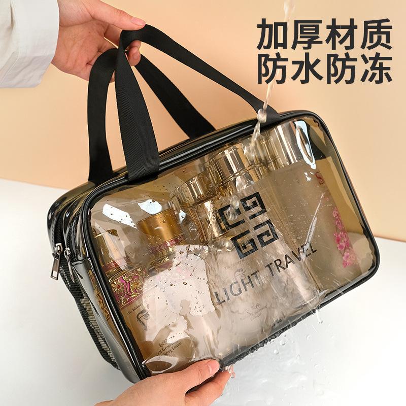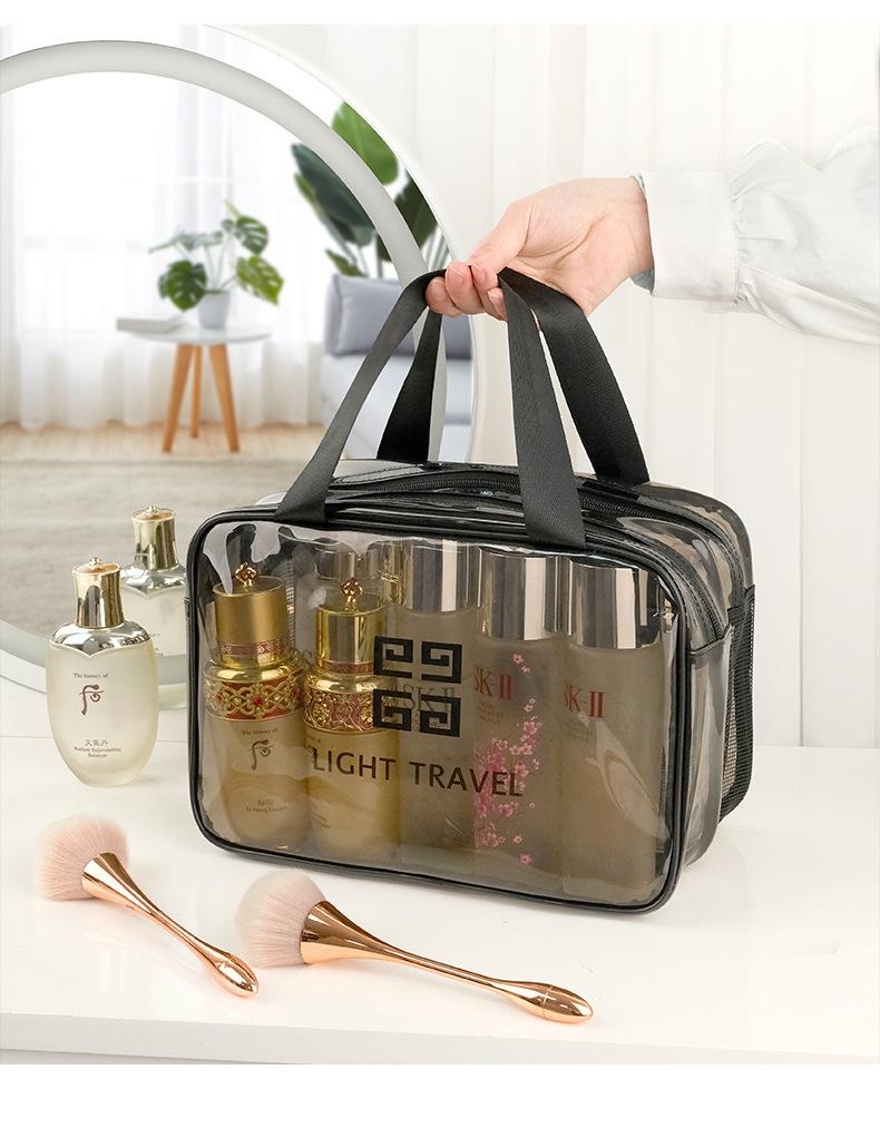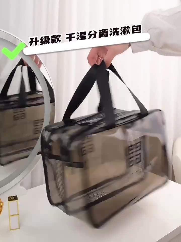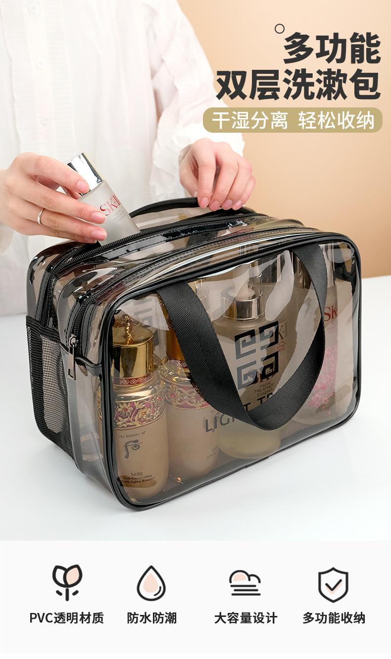 Bolsa de viaje portátil para cosméticos, transparente, de doble capa, de gran capacidad, con separación de ropa seca y húmeda, bolsa de almacenamiento, bolsa de gimnasio portátil.
