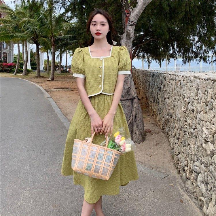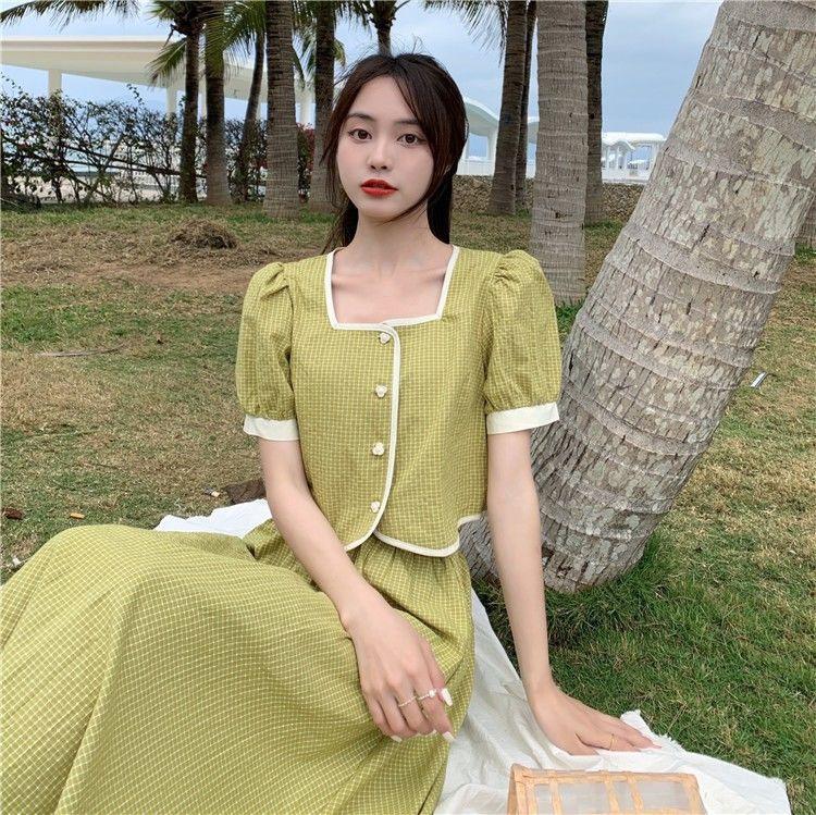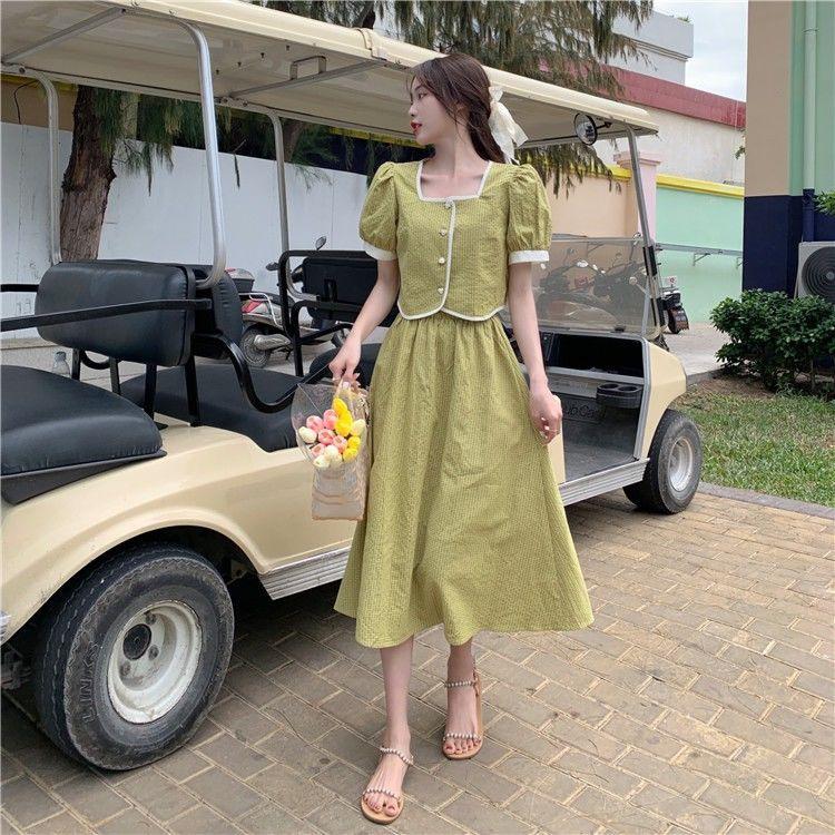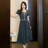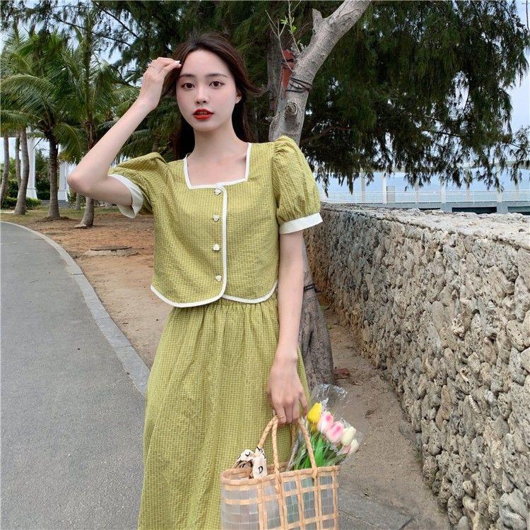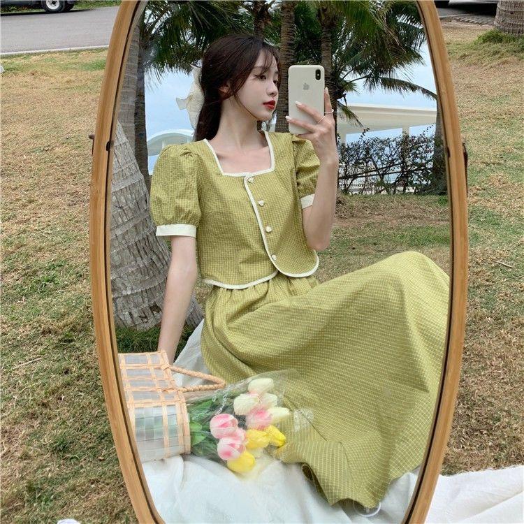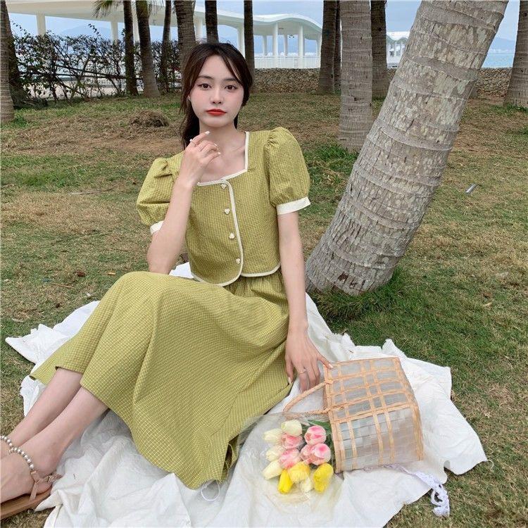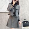 Conjunto de falda de dos piezas para mujer, nuevo estilo Chanel 2025, cárdigan de manga corta con cuello cuadrado y cintura alta, falda larga de media longitud.
