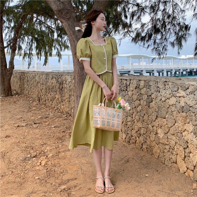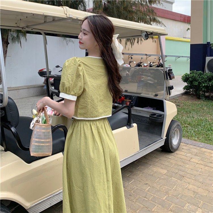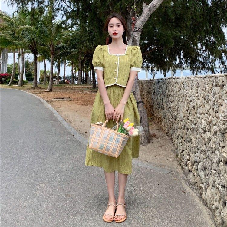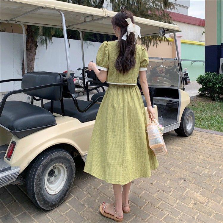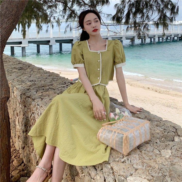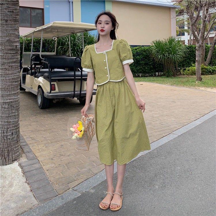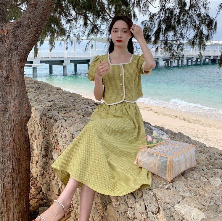 Conjunto de falda de dos piezas para mujer, nuevo estilo Chanel 2025, cárdigan de manga corta con cuello cuadrado y cintura alta, falda larga de media longitud.